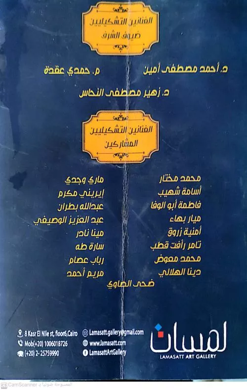 28 Kasr El Nile st, floors,Cairo Lamasatt.gallery@gmail.com @ www.lamasatt.com Mob(+20) 1006018726 LamasattArtGallery