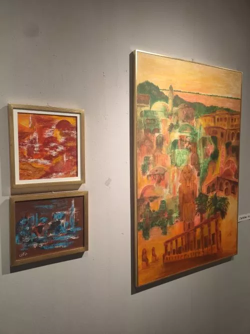 نقابة الفن بالقاهرة عزيزة فوزي كريستين عريضة فيصل احمد هاني عزام... هبة خورشيد جيداء زكريا منى هاني نادية زكي نيفين درويش عزة رفعت ابتسام زكي هناء حلمي حفصة كمال هدى الكوني لبنى زكريا نادية الخولي نازلي مصطفى نهال الهواري بيري حبشي " سامية كامل وفاء النشاشيبي وليم صفوت قاعة صلاح طاهر للفنون التشكيلية "دار الأوبرا بالقاهرة".. من 18 إلى 23 نوفمبر يومياً من الساعة 10 صباحاً حتى الساعة 2 ظهراً. ومن الساعة 4.30 إلى 8.30 مساءً، ما عدا الجمعة.
