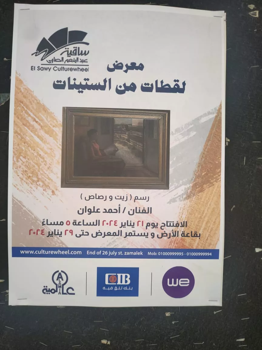 ساقية عبد المنعم الصاوي El Sawy Culturewheelمعرض لقطات من الستيناترسم ( زيت و رصاص )الافتتاح يوم ٢١ يناير ٢٠٢٤ الساعة ٥ مساءً بقاعة الأرض و يستمر المعرض حتى ٢٩ يناير ٢٠٢٤الفنان / أحمد علوان