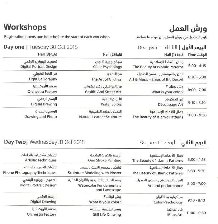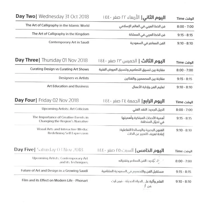 مهرجان مسك الفنون ۲۰۱۸ منصة للأشخاص الذين يأسرهم الفضول والإبداع، للفنانين الناشئين والمحترفين، ليتعمقوا في مساحة بين الفن التقليدي والمعاصر وينهلوا من تبع الخبرة الحكيم. ثم يشاركوا ما اكتشفوه مع الخبراء والزوار.