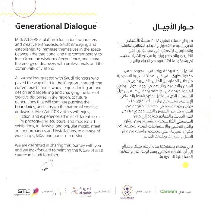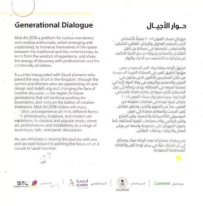 نحن سعداء بمشاركتنا هذه الرحلة معك ونتطلع إلى أن نتشارك معًا فى رسم لوحة الفن والثقافة المستقبلية للسعودية.