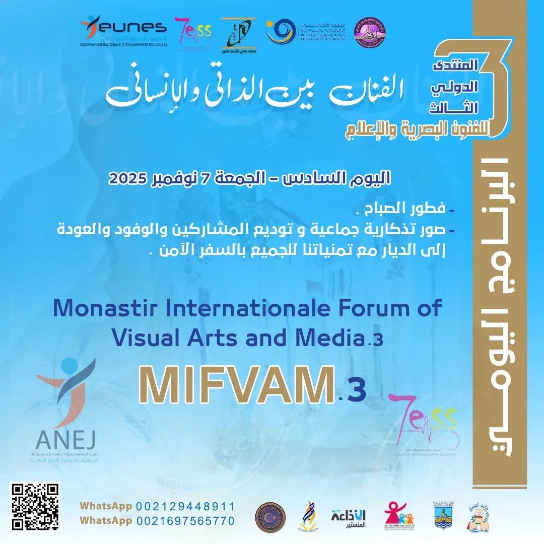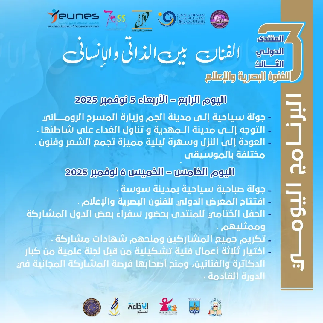 المنتدى الدولي الثالثللفنون البصرية والإعلام الفنان بين الذاتي والإنساني2025Novembre نوفمبرمن 02 إلى 07WhatsApp 0021652682170WhatsApp 0021697565770