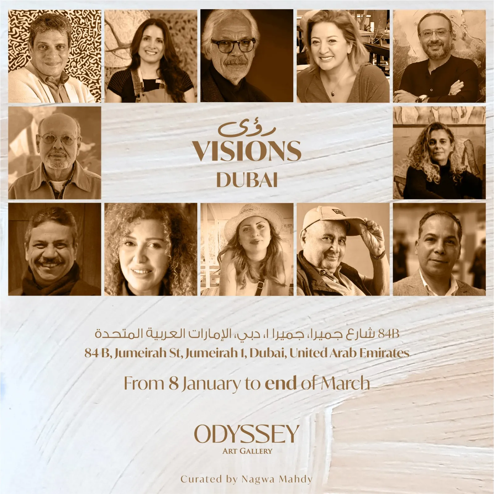اكتشفوا مجموعة من الإبداعات واللوحات الفنية المميّزة ل 21 فنان وفنانة في أوديسي آرت جاليري بدبي تحت فيلا جيميفا، من 8 يناير حتى نهاية مارس، مستمر يومياً من الساعة 11 صباحاً حتى 9 مساءً! 84B شارع جميرا، جميرا 1، دبي، الإمارات العربية المتحدة