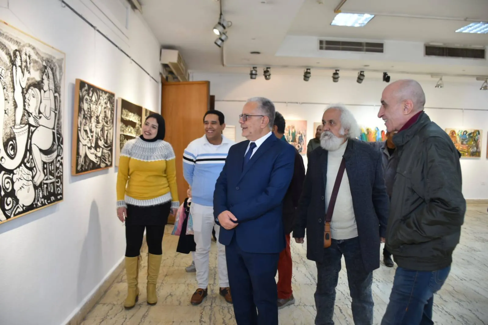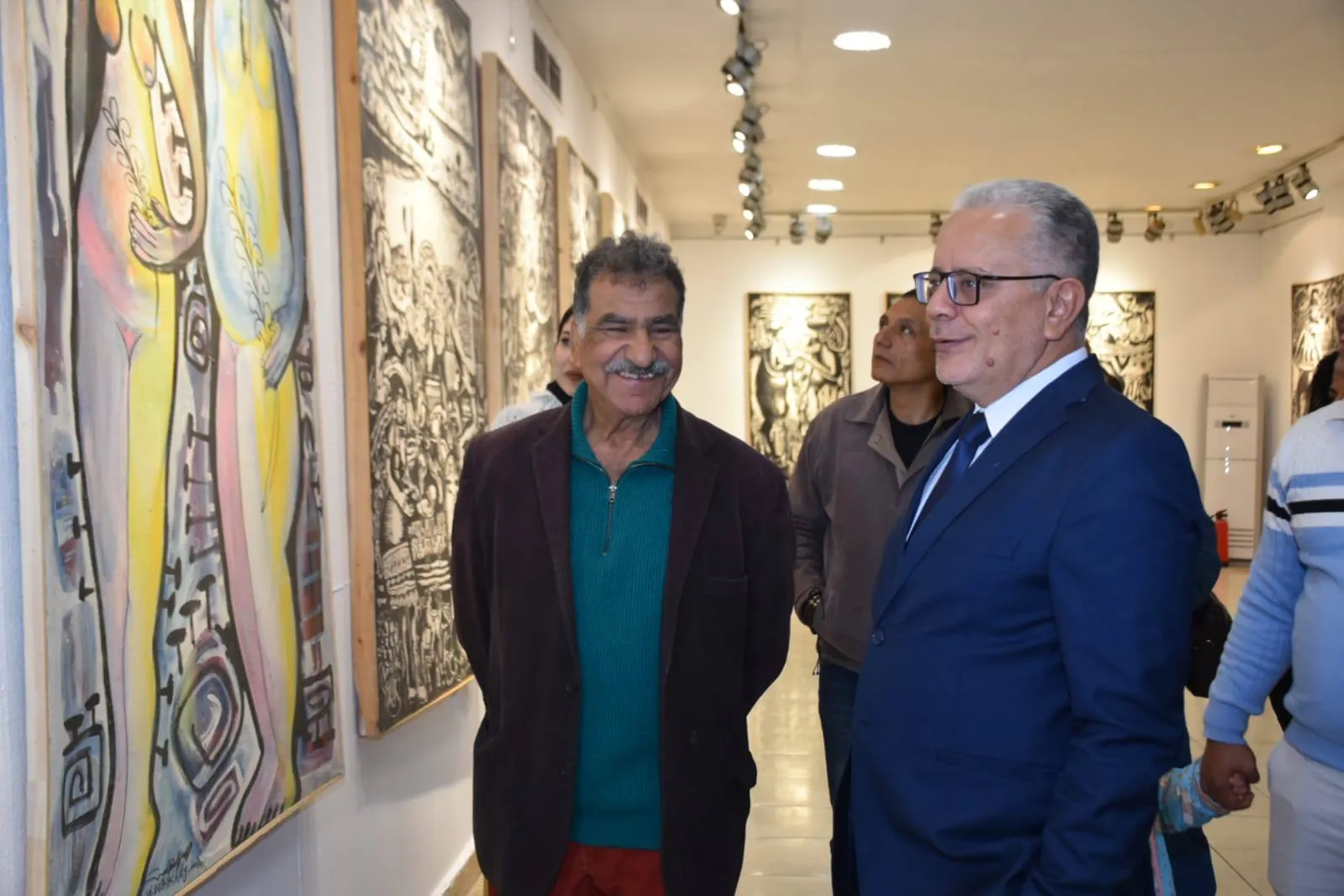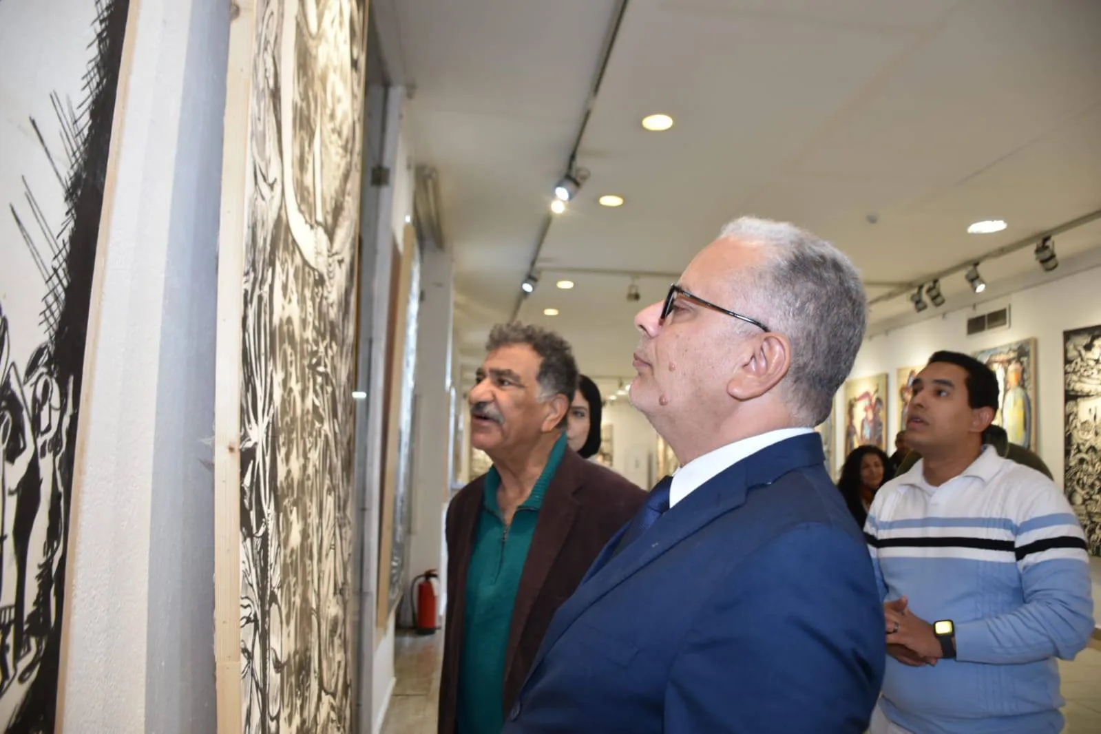 Professor Dr. Walid Qanoush, Head of the Fine Arts Sector, had the honor of opening the exhibition in the Nahdet Misr and Isis Halls at the Mahmoud Mokhtar Cultural Center.