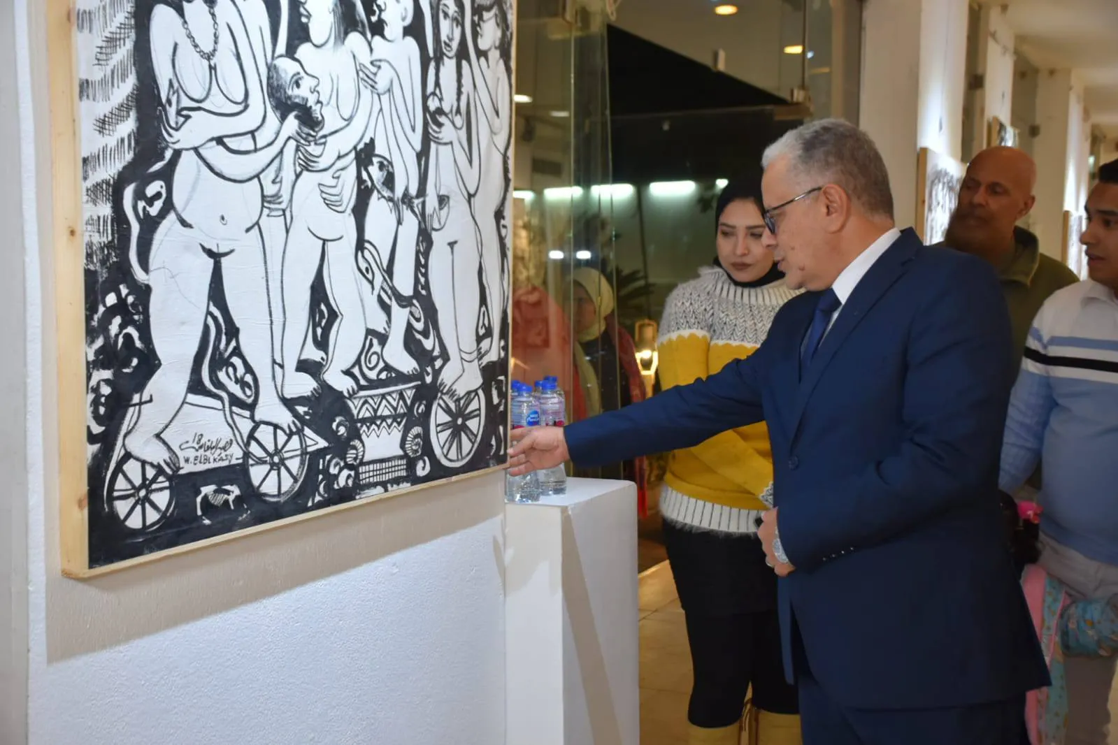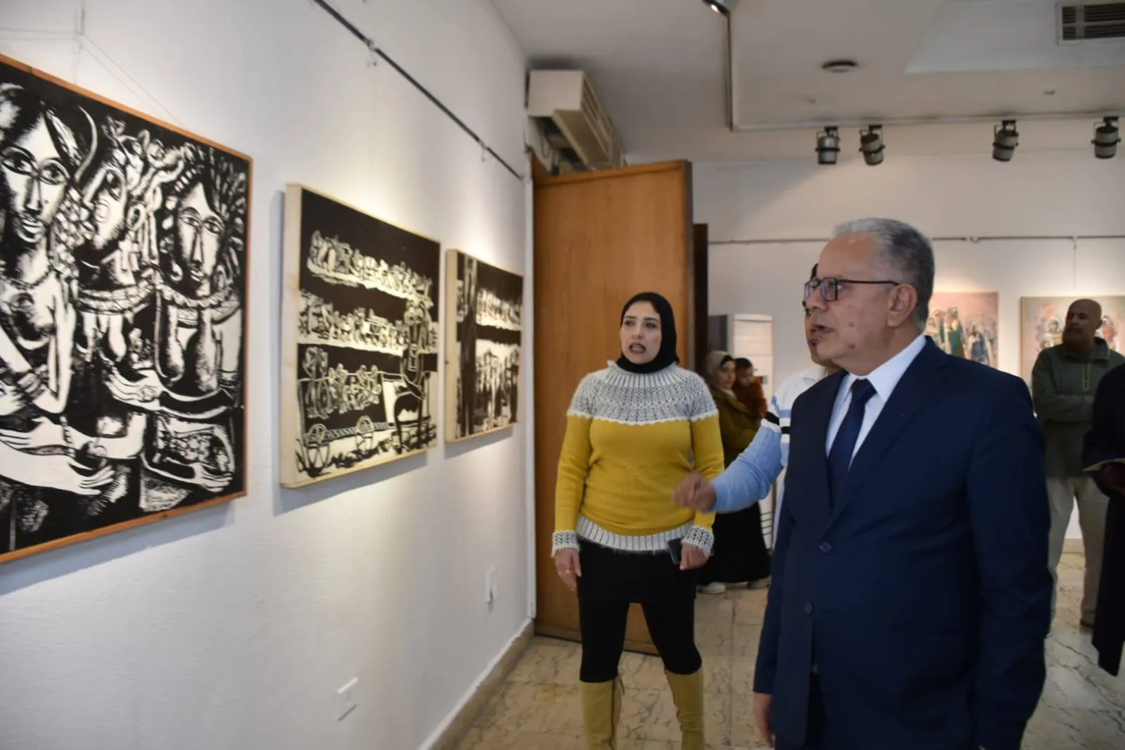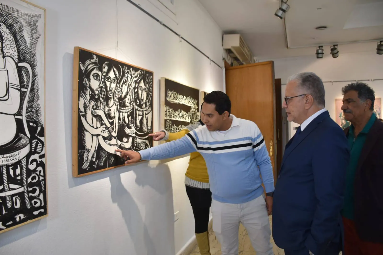 Professor Dr. Walid Qanoush, Head of the Fine Arts Sector, had the honor of opening the exhibition in the Nahdet Misr and Isis Halls at the Mahmoud Mokhtar Cultural Center.