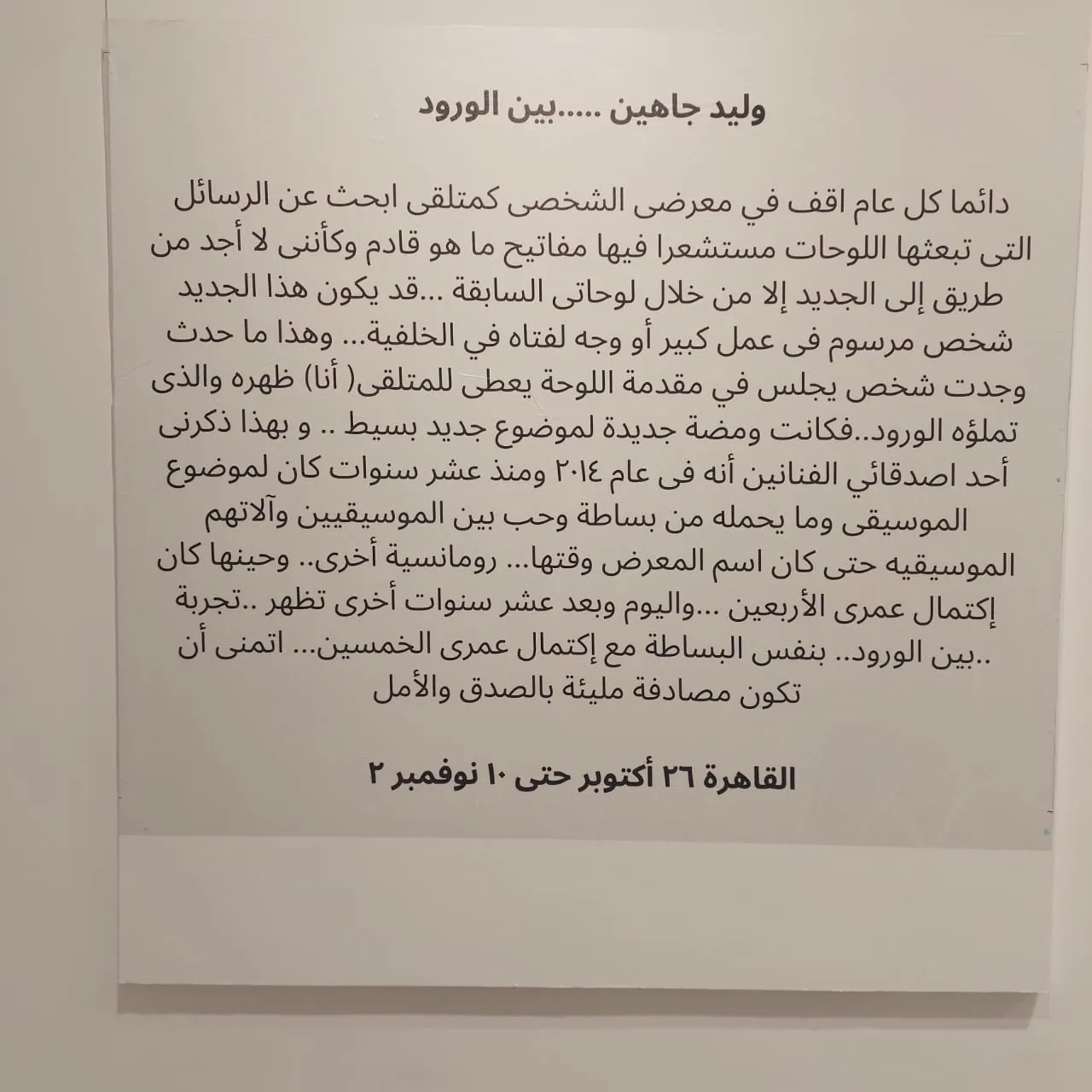 We are pleased to invite you to the opening of the solo exhibition "Amidst Flowers" by the talented Walid Jahin! Dive into a world of vibrant colors and intricate designs as Walid showcases his latest artworks. Join us to celebrate this unique artistic journey and immerse yourself in the magical atmosphere of the exhibition! Opening Date: Saturday, October 26, 2024 at 7:00 PM Location: Zahwa Art Gallery inside Onspace 8 Qasr El Nil Street, 5th floor, Downtown Cairo