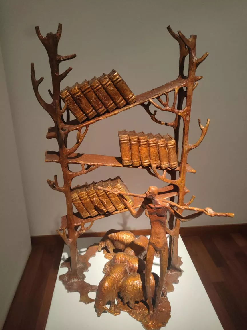 And Nathan Doss in a unique show at the Zamalek Art Hall Nathan Doss “Between Concept and Enlightenment”... a new exhibition by sculptor Nathan Doss, through which he seeks enlightenment and illuminating dark spaces in the collective mind. In it, he presents a “portrait” of two models of enlightenment figures, namely the dean of Arabic literature, Taha Hussein, and the Alexandrian philosopher Hypatia. He also sends a message of appreciation to his mother. Mrs. Enayat, whom he describes as “the first recipient of his work and his first supporter.” The exhibition sends a message of hope to the recipient, and takes him on a journey through sculptures with diverse ideas and intertwined situations. Each sculpture has a story and a message, which he collects all of in his exhibition, which will be launched at the Zamalek Gallery, next Wednesday. Nathan Doss explains, in his interview with “Icon”, that enlightenment means that a person gets rid of the guardianship that he brought upon himself, and the breaking of the “taboos” settled in his minds, and this is what appeared in all of his works, including two portraits, which he describes as the core of his idea, and they are Taha Hussein and Hypatia say: “Taha Hussein is a literary and intellectual value. After his return from France, obtaining his doctorate there, and writing his book on pre-Islamic poetry, he suffered from persecution. He was expelled from Cairo University and asked to revise the book because of the value of Cartesian skepticism that prevailed in his thoughts.” As for Hypatia, he points out that she was an Alexandrian philosopher in the fourth century AD, and the church feared her because the governor of Alexandria at that time was one of her students. They accused her of witchcraft and sorcery, dragged her through the streets of Alexandria, skinned her with snails, burned her, executed her, and threw her ashes into the sea, adding: “What I mean by these two examples.” Ignorance and backwardness can kill intellectual statures like them.” In white marble, he presented a portrait of his mother. He says: “If there is a seed of art in it, then I believe that my mother is the one who planted it. She is the first recipient of my works. And in my childhood, she was the one who shaped my toys, and very instinctively. She is a simple woman who did not go to school. She was a housewife in an agricultural community.” After my academic studies, I glorified my mother, like the princes and Caesars in the Roman and Greek civilizations. She was the first teacher and the first recipient of my work.” In his exhibition, “Doss” presents an interview between “the shepherd and the farmer,” in order to champion Egyptian history and geography. He explains: “The ancient Egyptian is the one who sowed wheat and built obelisks, pyramids, tombs, architecture, doctrine, and arts. Everything that the ancient Egyptian produced in terms of civilization is constant.” He explains that “Al-Rahaya” is a work that embodies a sculpted woman holding the key of life in her hand as if she were contributing to the grinding, and refers to the idea that life is like a mill in changing the appearance of people, from children to teenagers to young people and the elderly: “This change also means that the appearance of people changes through knowledge and the battle in research.” with life".