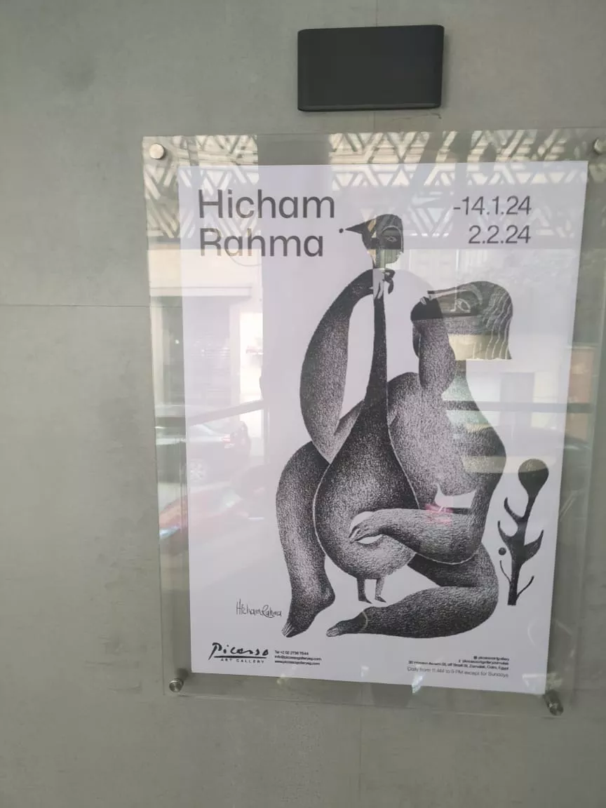 Picasso Art Gallery cordially invites you to attend the opening of a new show by HICHAM RAHMA Sun.14th Jan. From 7pm Runing till 2nd of Feb.2024 Picasso ART GALLERY 02 2736 7544 +2 01024850021 30 Hassan Assem st. El Zamalek, Cairo Daily from 11am to 9pm except Sundays