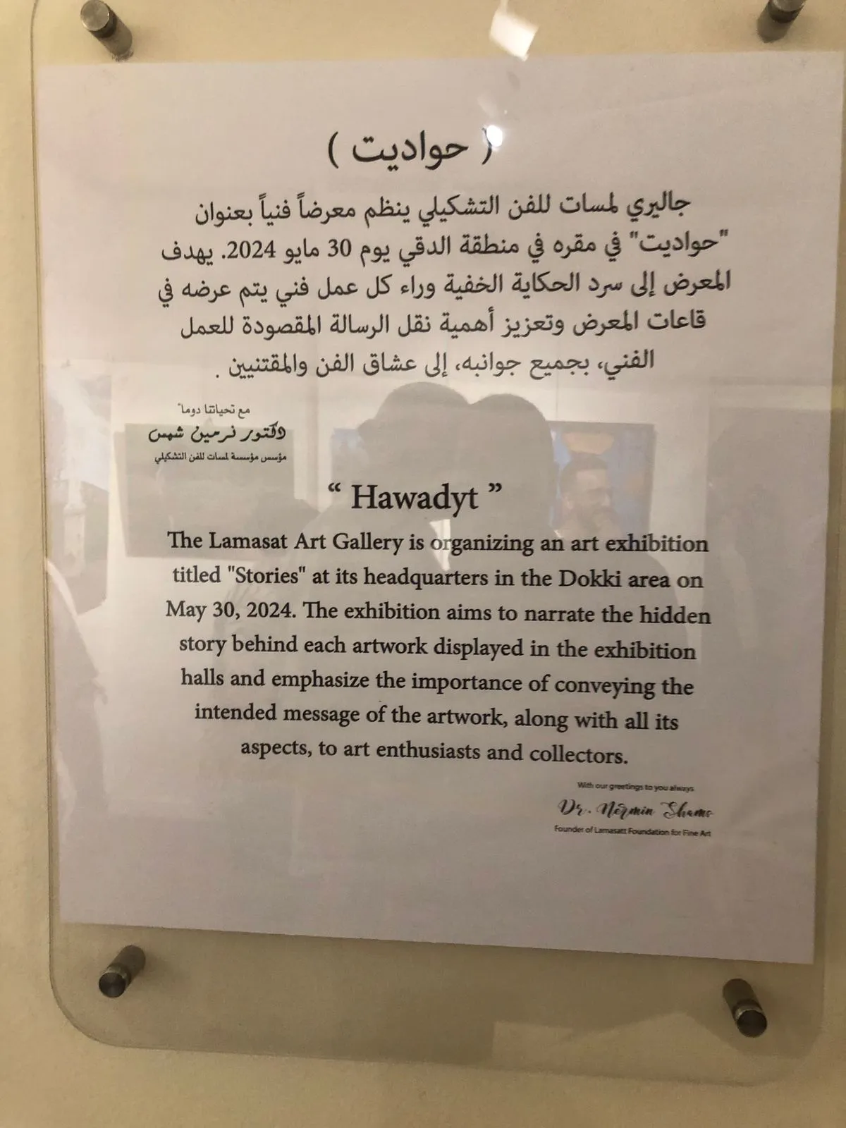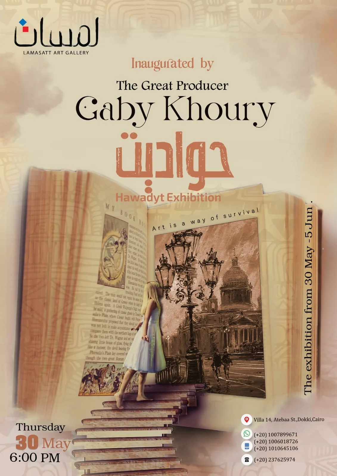 The Lamasat Art Gallery is organizing an art exhibition titled "Stories" at its headquarters in the Dokki area on May 30, 2024. The exhibition aims to narrate the hidden story behind each artwork displayed in the exhibition halls and emphasize the importance of conveying the intended message of the artwork, along with all its aspects, to art enthusiasts and collectors.