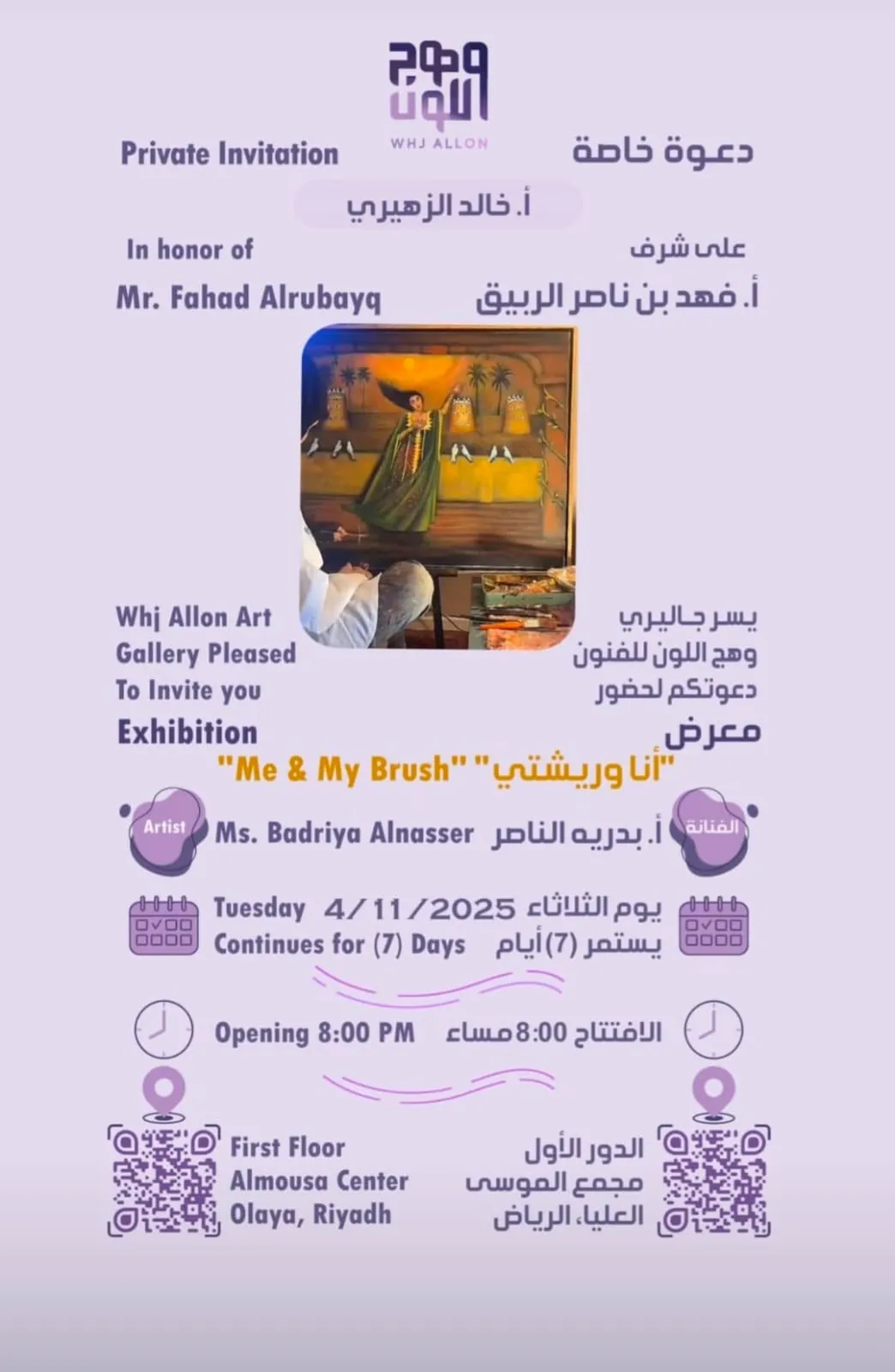 In honor ofMr. Fahd bin Nasser Al-RubaigWHJ ALLOn Art Gallery is pleased to invite you to attend the exhibition: