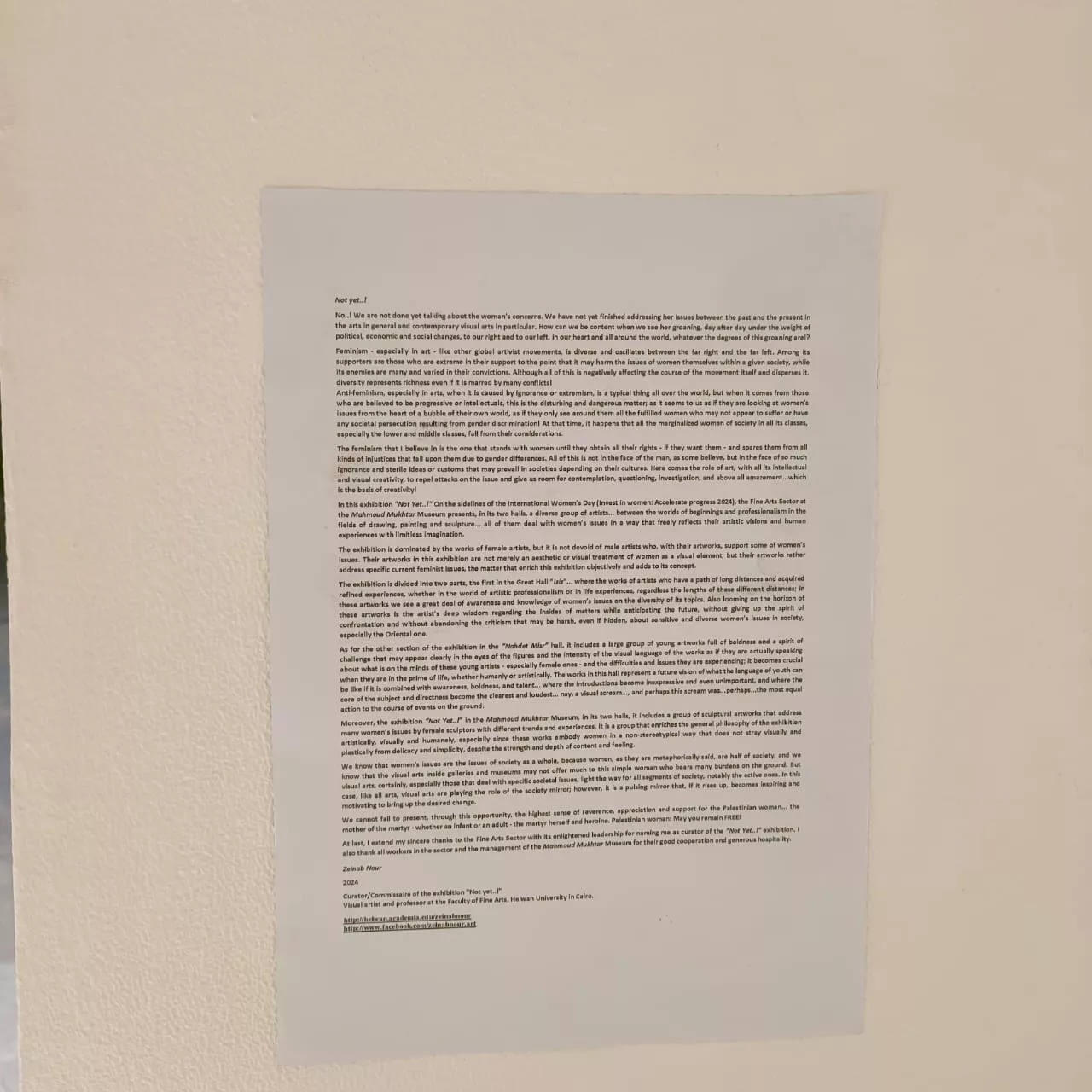 One of the activities of International Women's Day Participating artists Asmaa Al-Nawawi Enas Al-Siddiq Engy Ahmed Paula Magdy Reda Abdel Salam Zeina Khaled Salma Quraitem Sarah Kamal Fatima Mahmoud Sahar Durgham Role model Muhammad Alaa Yahya Sherine Gamal El-Din Shaima Darwish Abeer Al-Sayed Bebo Lina Al Majdoub Fayrouz Samir Farida Amr Verena Morris Maryam Samir Lina Osama Maria Youssef Nesma Mahmoud Mervat Atallah Mona is strange Nouran Ahmed Nadia Tawfiq Nourhan Ayman Nouran Sharif Nevin Nathan Niqin Ahmed Mukhtar Nermin El Masry The opening will be at six in the evening on February 22 at the Mahmoud Mukhtar Cultural Center The exhibition continues until March 9, 2024 Daily from 9 am to 9 pm except Friday Mahmoud Mukhtar Cultural Center - Mahmoud Mukhtar Museum - 5 Tahrir St., next to Cairo Sports Club, Tel: 27351133