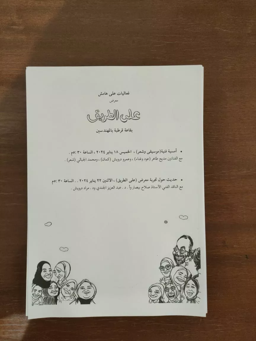 The “Art Sweets” group is honored to invite you to attend the opening of the “On the Road” exhibition, at six o’clock in the evening on Monday, January 15, 2024, in the Cordoba Hall (3 bis Degla Street, branching from Al-Furat Street, from Arab League Street, Mohandiseen). The opening ceremony was courtesy of artist Dr. Murad Darwish, faculty member at the Faculty of Fine Arts, Helwan University. The exhibition includes 61 paintings by 12 artists, in addition to a painting by the exhibition’s guest of honour. Artist Abdul Aziz Al-Jundi. The exhibition’s works vary between photography and drawing using various materials such as gouache, collage, watercolors, and inks. Its themes from the Egyptian environment move between portraiture and landscape, with approaches and artistic methods that are realistic, but are dominated by modern, liberal styles. The exhibition continues until Sunday, January 21, 2024. It is open daily from 11 am to 9 pm except Friday