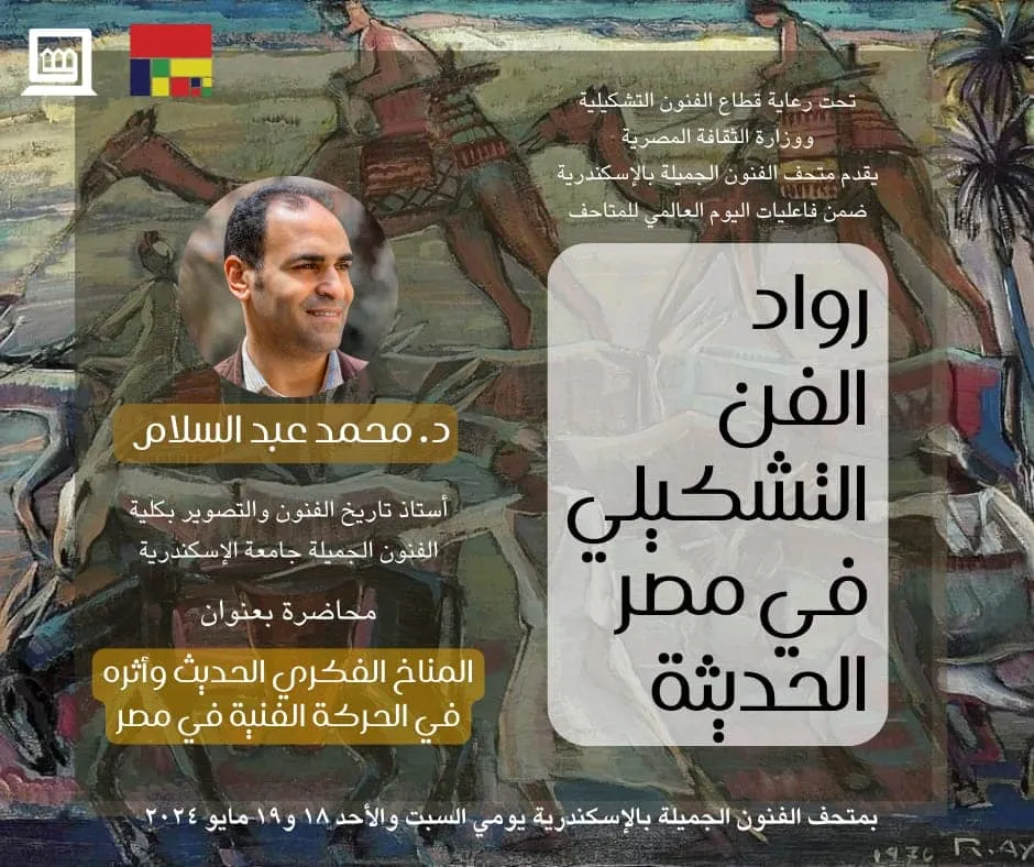 Pioneers of Egyptian plastic art At the Museum of Fine Arts in Alexandria Under the patronage of Dr. Nevin Al-Kilani, Minister of Culture, Prof. Dr. Walid Qanoush, Head of the Fine Arts Sector, kindly opened an exhibition entitled (Pioneers) on Saturday, May 18, 2024, at exactly 2:00 pm in the Hamed Owais Hall in the Museum of Fine Arts in Alexandria, coinciding with the celebration of International Museum Day. . The exhibition is accompanied by a group of lectures and discussions on the history of art, entitled “Pioneers of Fine Art in Modern Egypt.” Delivered by an elite group of professors from the Faculty of Fine Arts and a number of researchers in the history of Egyptian art, the events will be held on Saturday and Sunday, May 18 and 19, 2024, starting from 12 noon until 2 p.m. in the theater hall. Address: 6 Mansha Street - Moharram Bey - Alexandria. Tel: 033935616 #Fine_Arts_Sector Museum of Fine Arts in Alexandria #Museum_of_Fine_Arts_in_Alexandria Waiting to honor you.