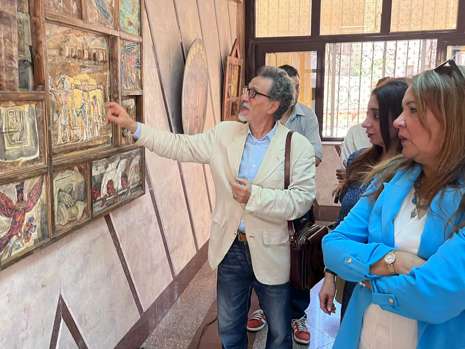 The Higher Institute of Art Criticism is honored by the presence of Professor Dr. Ghada Gebara, President of the Academy of Arts, to open the third exhibition of plastic art entitled "Stages" by the distinguished artist Fares Ahmed Fares. The event was attended by a large number of professors, administrators and students at the institute, most notably the professors of the Fine Arts Criticism Department: Prof. Dr. Magda Saad El-Din, Prof. Dr. Mohamed Taj El-Din, Prof. Dr. Mustafa Yahya, who presented a distinctive critical vision of the exhibition.