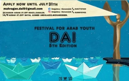 Only 17 Days left to submit your artwork and participate “Dai festival for Arab youth, 5th edition 2024 Fill the form https://drive.google.com/.../192LkTGShYddO40k... And Submit your artwork now at mahragan.dai5@gmail.com Submission is open until July 31th 2024 Visit us daily from 11:00AM to 9:00PM except Fridays