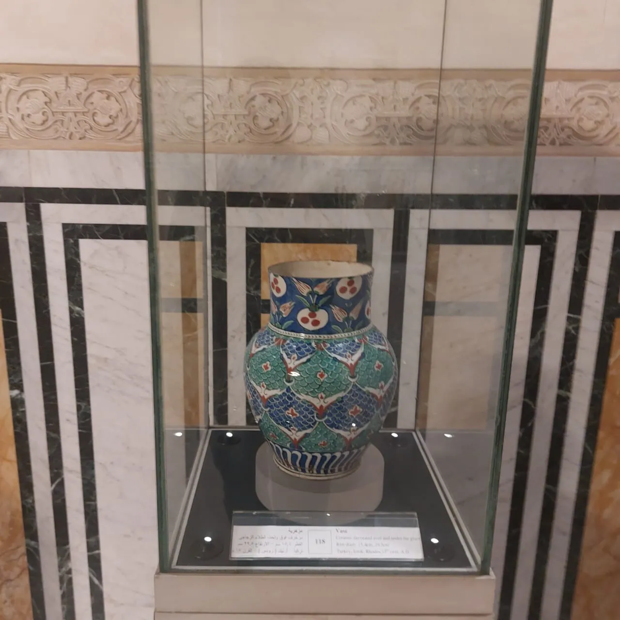 The Islamic Ceramics Museum opens to the public after a 14-year closure on Tuesday, October 15, 2024 Islamic Ceramics Museum (Prince Amr Ibrahim Palace) at the Gezira Arts Center 1 Sheikh Al-Marsafi Street - next to the Marriott Hotel - Zamalek Visiting hours daily: from 9:00 am until 4:00 pm except Friday The Islamic Ceramics Museum includes a distinguished collection of Islamic ceramic pieces, amounting to 315 ancient ceramic pieces from the creations of Islamic civilization. The museum also includes a hall dedicated to the works of the late Sheikh of Potters, artist / Saeed Al-Sadr (1909) (1986). The Islamic Ceramics Museum is located on the ground and first floors of the "Prince Amr Ibrahim" Palace, the headquarters of the Gezira Arts Center in Zamalek. The palace dates back to (1343 AH - 1923 AD). The palace was built to combine several architectural styles, as its architectural elements are inspired by the Mamluk style, the Turkish style, the Andalusian style, and North Africa, with influences from the European Baroque and Rococo styles. The architectural design of the palace belongs to the Mamluk style, and the stained glass windows with plaster are prominent elements in its architecture, in addition to other architectural elements in their diversity, such as the highly rich Arab carving works, as well as the ceilings and walls decorated with decorations and plaster muqarnas filled with decorative plant and geometric elements and writings in intertwined and stacked formations.