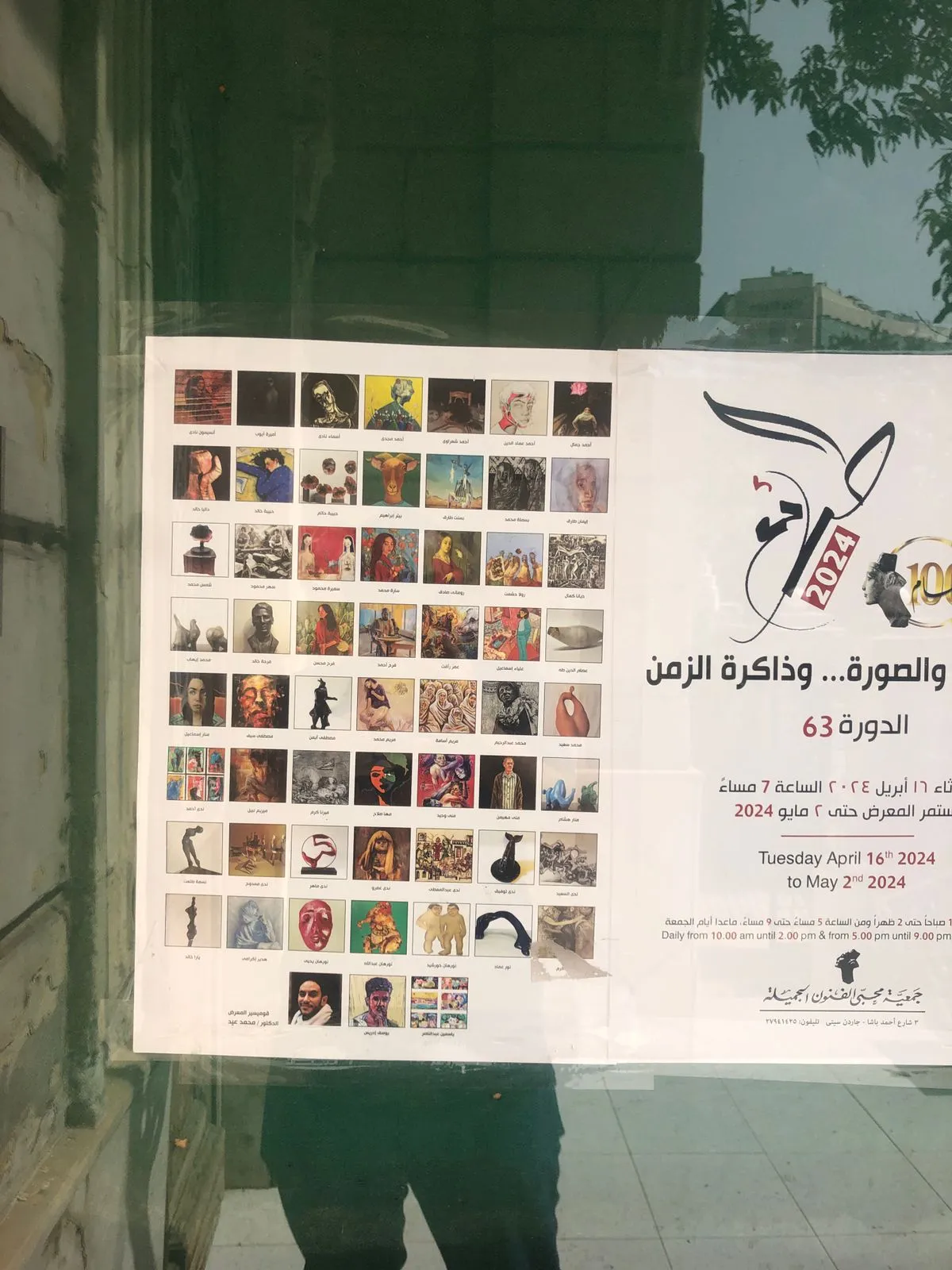 2024 The human being... the image... and the memory of time Session 63 Tuesday, April 16, 2024 at 7 pm The exhibition continues until May 2, 2024 Tuesday April 16th 2024 to May 2nd 2024 Daily from 10 am until 2 pm and from 5 pm until 9 pm, except Fridays Daily from 10.00 am until 2.00 pm & from 5.00 pm until 9.00 pm. Except Fridays. Fine Arts Lovers Association Ahmed Pasha Street, Garden City, Tel: 27941425
