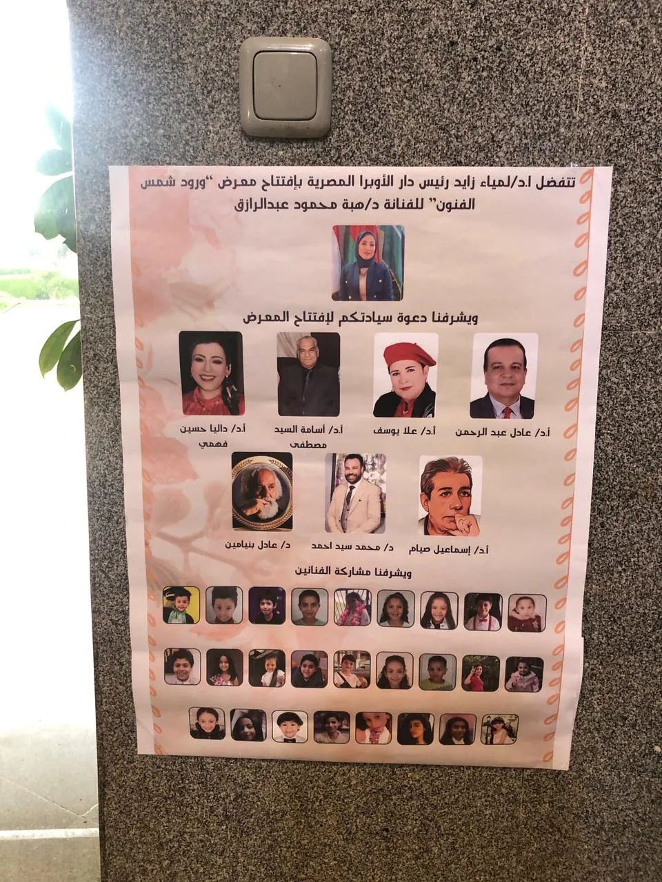 Cairo Opera House exhibition Roses of the Sun of Arts By the artist Dr. Heba Mahmoud Abdel Razek Opening at exactly six o'clock in the evening on Wednesday, June 26, 2024, in the Ziad Bakir Hall at the Cairo Opera House - in the music library. -With the participation of more than twenty children’s visual artists The exhibition is open daily from 10 am to 8 pm, except Friday, until 7/1/2024
