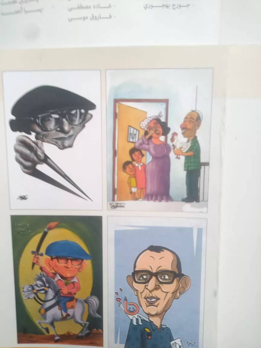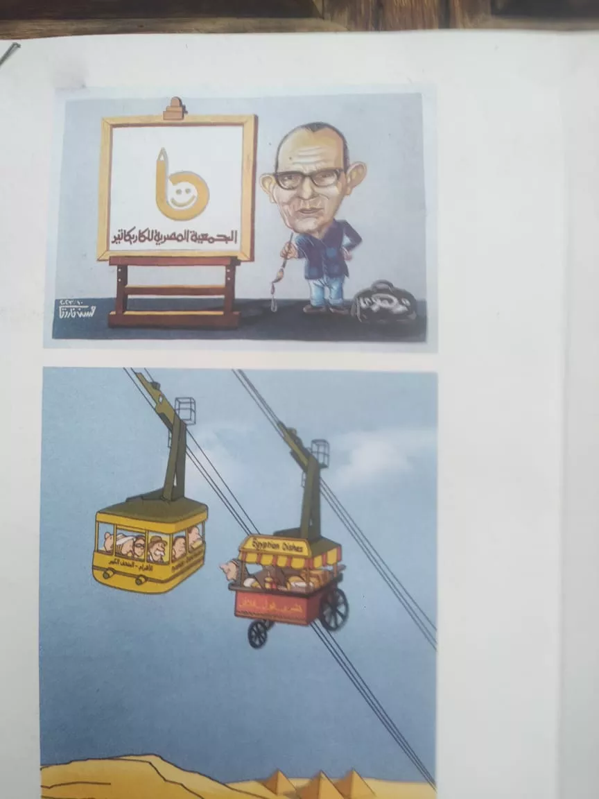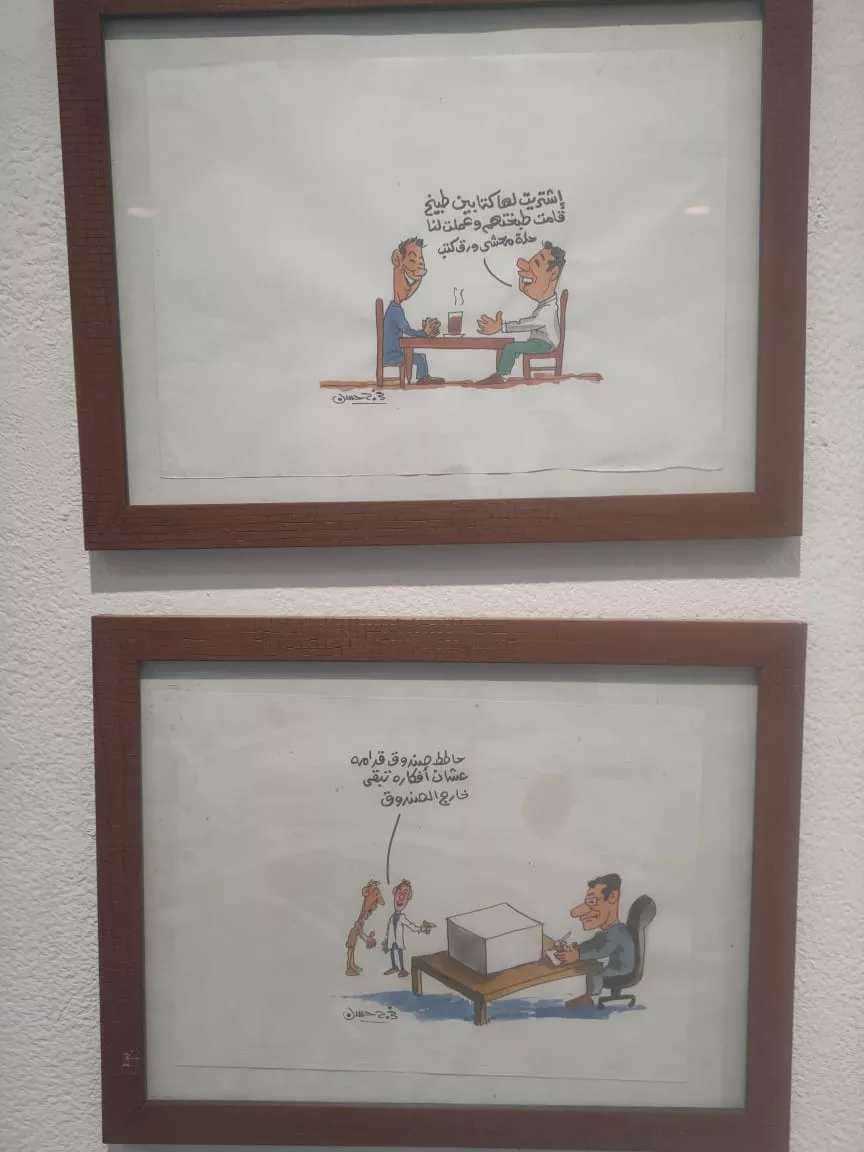 He added that this session is attended by a group of contemporary cartoonist pioneers and artists, headed by the artist Zuhdi Al -Adawi, the founder of the Egyptian Caricature Association, and the artist Abdel Moneim Rakha, the headmaster of the Egyptian cartoon school, and among the paintings offered by the works of the artist Abdel Aziz Taj, the honorary president of the Egyptian Cartoon Association, George Bahjouri , Ahmed Alawi, Faraj Hassan, and the late great artists Picar, Toughan, Mustafa Hussein, Salah Al -Laithi, Mohamed Effat, Juma Farhat, and other pioneers alongside most contemporary creative cartoonists.