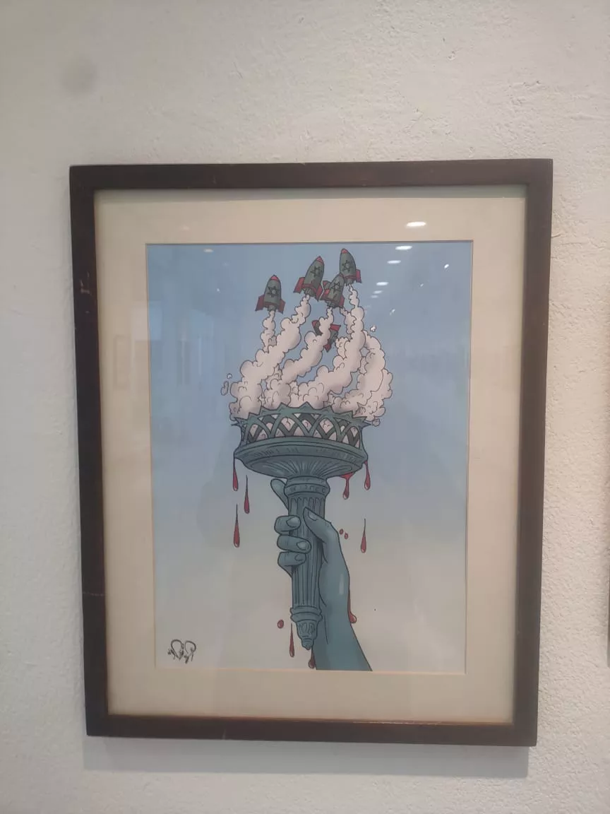 The artist Fawzi Morsi, the general coordinator of the exhibition, indicated; This copy of the cartoon feast is a gift to our brothers in Gaza, the patient and the steadfastness who oppress their steadfastness, patience, sacrifices, and martyrs of the brutality of the occupier, and includes a set of works with the aim of supporting the Palestinian issue and solidarity with our people in Palestine.