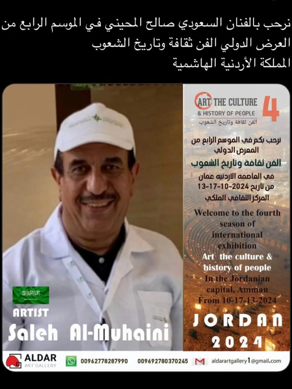 Dar Art Gallery Foundation The fourth season of the international exhibition (Art, Culture and History of Peoples) Which will be held in the Hashemite Kingdom of Jordan/Capital Amman at the Royal Cultural Center during the period between 13-17/10/2024