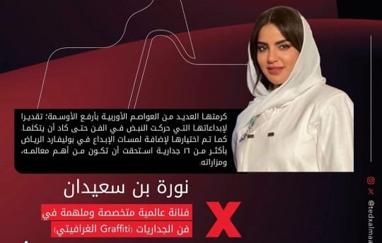 About her experience with this art, “I started towards graffiti in the last four years. It was not that easy, but it was an intense work phase through which I emerged with a diverse artistic presence in the field of drawing murals at the level of form, content, and size. My participation within Riyadh Boulevard was like a starting point, given the size of The number and content of the contributions I made was a remarkable technical effort that gained the community’s approval and approval
