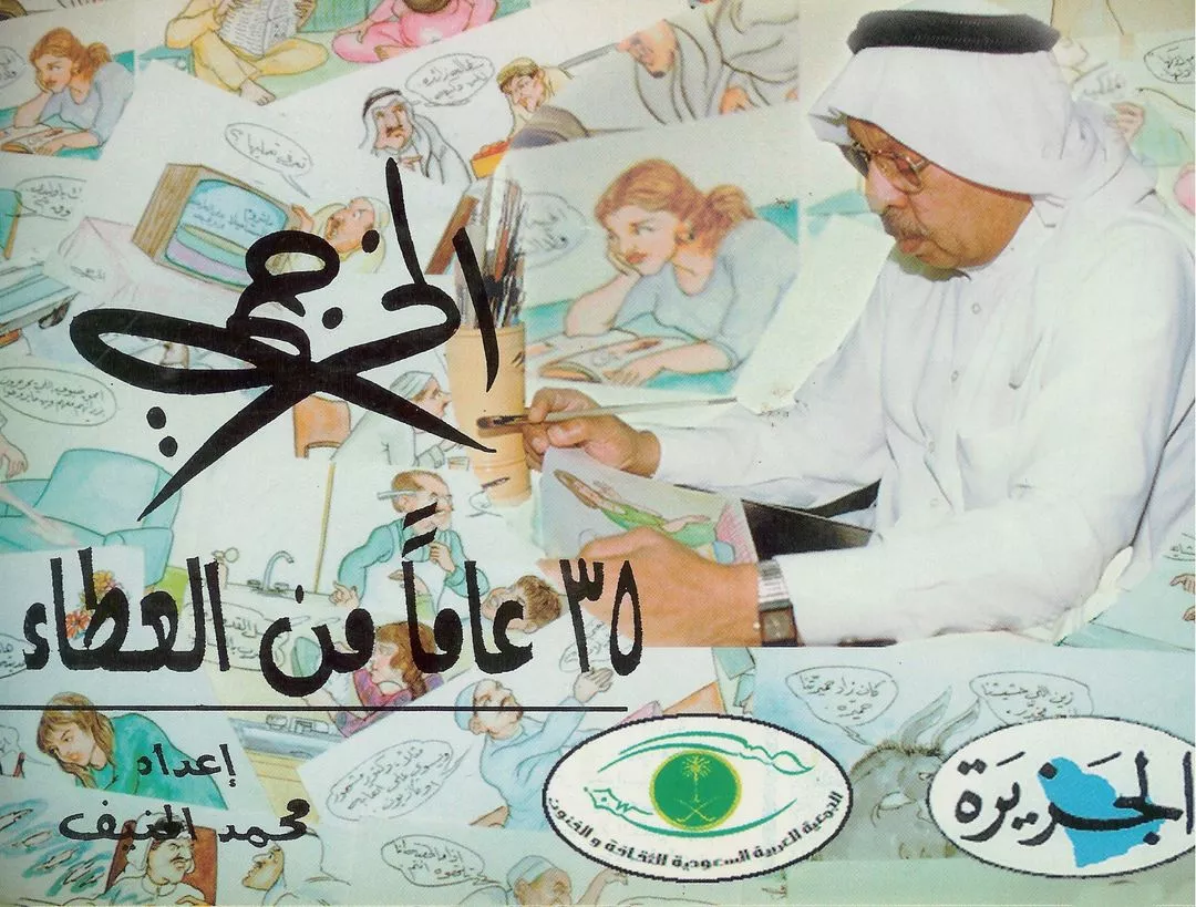 (Cartoonists are born, not made), as the Saudi cartoonist Mohammed Al-Khanifer said himself repeatedly. Al-Kharji the painter, the sculptor, the broadcaster, and the writer Al-Kharji are a mixture of every cultural man who elaborated on his translation through his caricatures. He was practicing caricature for over 35 years>