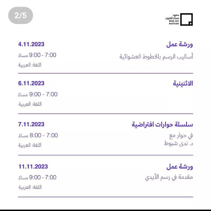 2023 ورش عمل معهد مسك للفنون نوفمبر