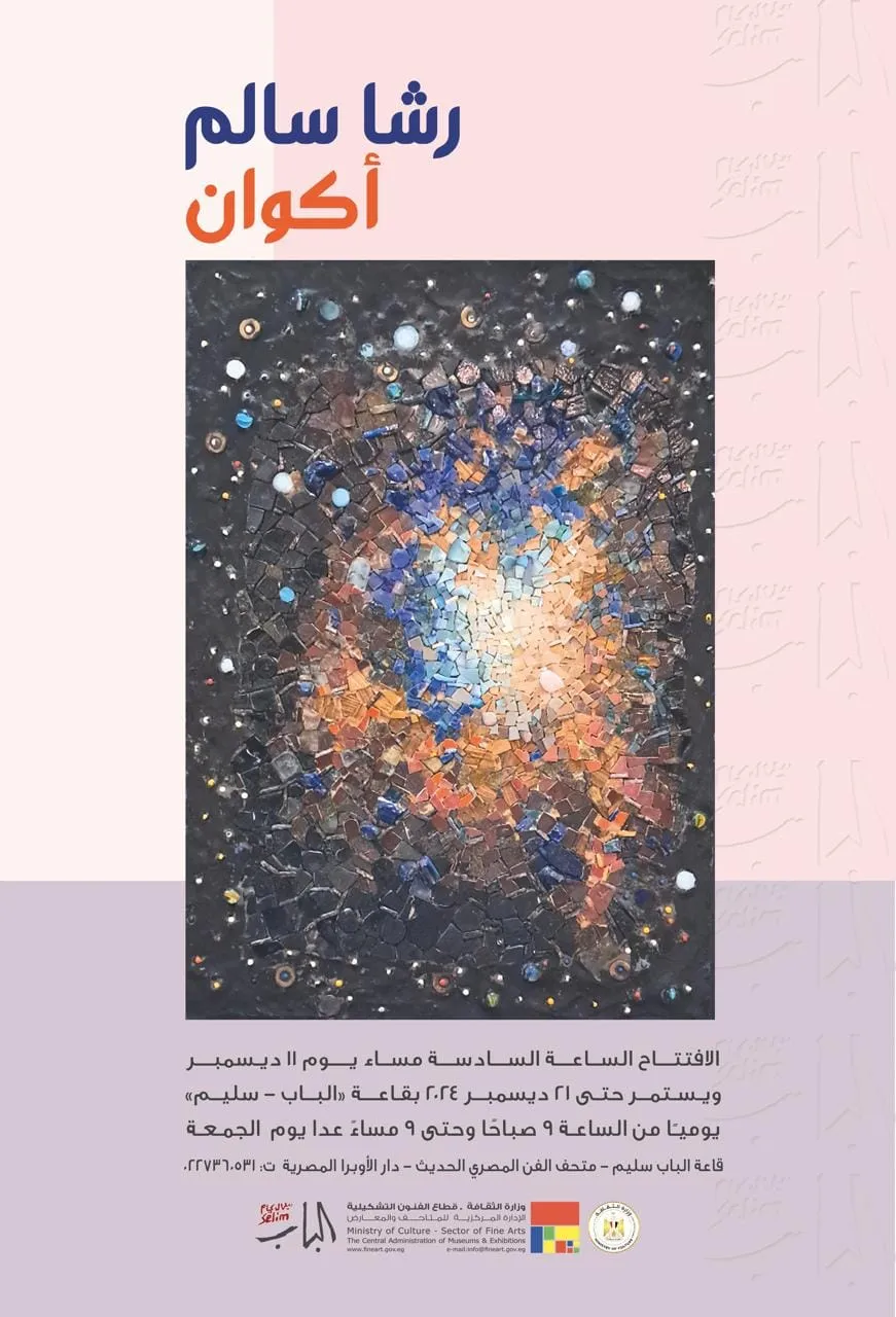 لكل محبي المعارض نقدم لكم "أكوان" رشا سالم بقاعة الباب برعاية أ.د/ أحمد فؤاد هنو وزير الثقافة يتفضل أ.د/ وليد قانوش رئيس قطاع الفنون التشكيلية بافتتاح معرض الفنانة/ رشا سالم تحت عنوان (أكوان) في انتظاركم الساعة الـ 6 مساء يوم الأربعاء 11 ديسمبر 2024 بقاعة الباب دار الأوبرا المصرية. يستمر المعرض حتى 21 ديسمبر 2024. في انتظار تشريفكم. المواعيد: يومياً من الساعة 9 صباحاً : الساعة 9 مساءً عدا يوم الجمعة. العنوان: قاعة الباب – متحف الفن المصري الحديث دار الأوبرا المصرية. ت: 0227360531 #قطاع_الفنون_التشكيلية