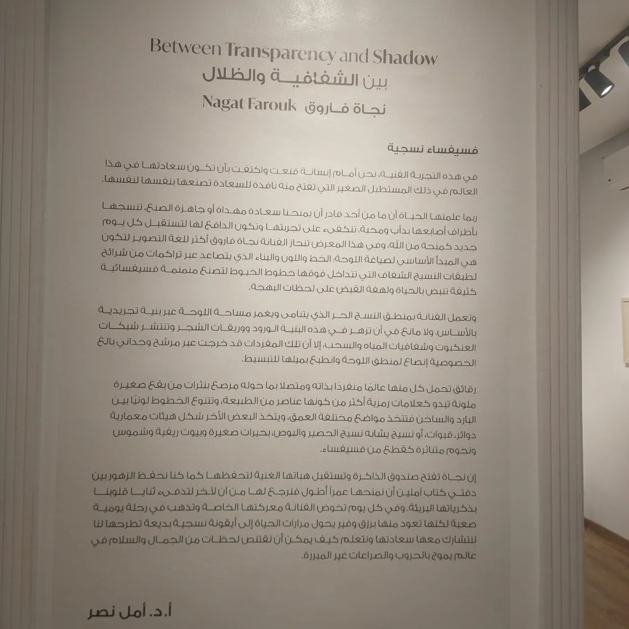انضمّوا إلينا لاستكشاف معرض "بين الشفافية والظلال" للفنانة نجاة فاروق، ابتداءً من 30 أكتوبر وحتى 17 نوفمبر، يوميًا من 10 صباحًا حتى 9 مساءً يُقام حفل الافتتاح يوم 30 أكتوبر في تمام الساعة 7 مساءً في أوديسي جاليري يسعدنا حضوركم.. 8 شارع الشيخ المرصفي، الزمالك، القاهرة، مصر