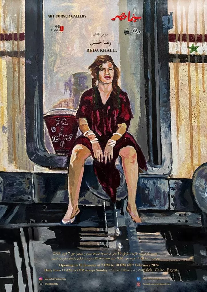 يطلق جاليري آرت كورنر في السادسة مساء اليوم الأربعاء الموافق 10 يناير 2024 معرض "سينما مصر"، للفنان رضا خليل، المزمع استمراره حتى 7 فبراير المقبل. يستلهم رضا خليل عبر معرضه روح السينما، من دون إعادة محاكاة لمشاهد سينمائية، إذ يقدم رسالة عرفان للسينما ودورها في إعادة تشكيلنا منذ الصبا وعشرات الذكريات التي ارتبطت بنا. وهناك بعض اللوحات تخيلية لأفلام لم تصدر، حيث يؤكد أنها جزء من طفولته وصباه وشبابه.