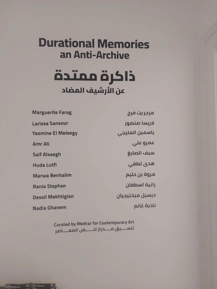 ذاكرة ممتدة: عن الأرشيف المضاد معرض جماعي من تنسيق مدرار للفن المعاصر ١٨ سبتمبر - ٨ أكتوبر ٢٠٢٤ الافتتاح ١٧ سبتمبر ٧ مساءً جاليري تخشينة واللاونج معهد جوته القاهرة. ٥ شارع البستان، وسط البلد GOETHE INSTITUT الدخول مجانا المعرض مفتوح يوميا من 1 إلى ١٠ مساءً