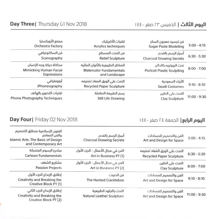 مهرجان مسك الفنون ۲۰۱۸ منصة للأشخاص الذين يأسرهم الفضول والإبداع، للفنانين الناشئين والمحترفين، ليتعمقوا في مساحة بين الفن التقليدي والمعاصر وينهلوا من تبع الخبرة الحكيم. ثم يشاركوا ما اكتشفوه مع الخبراء والزوار.