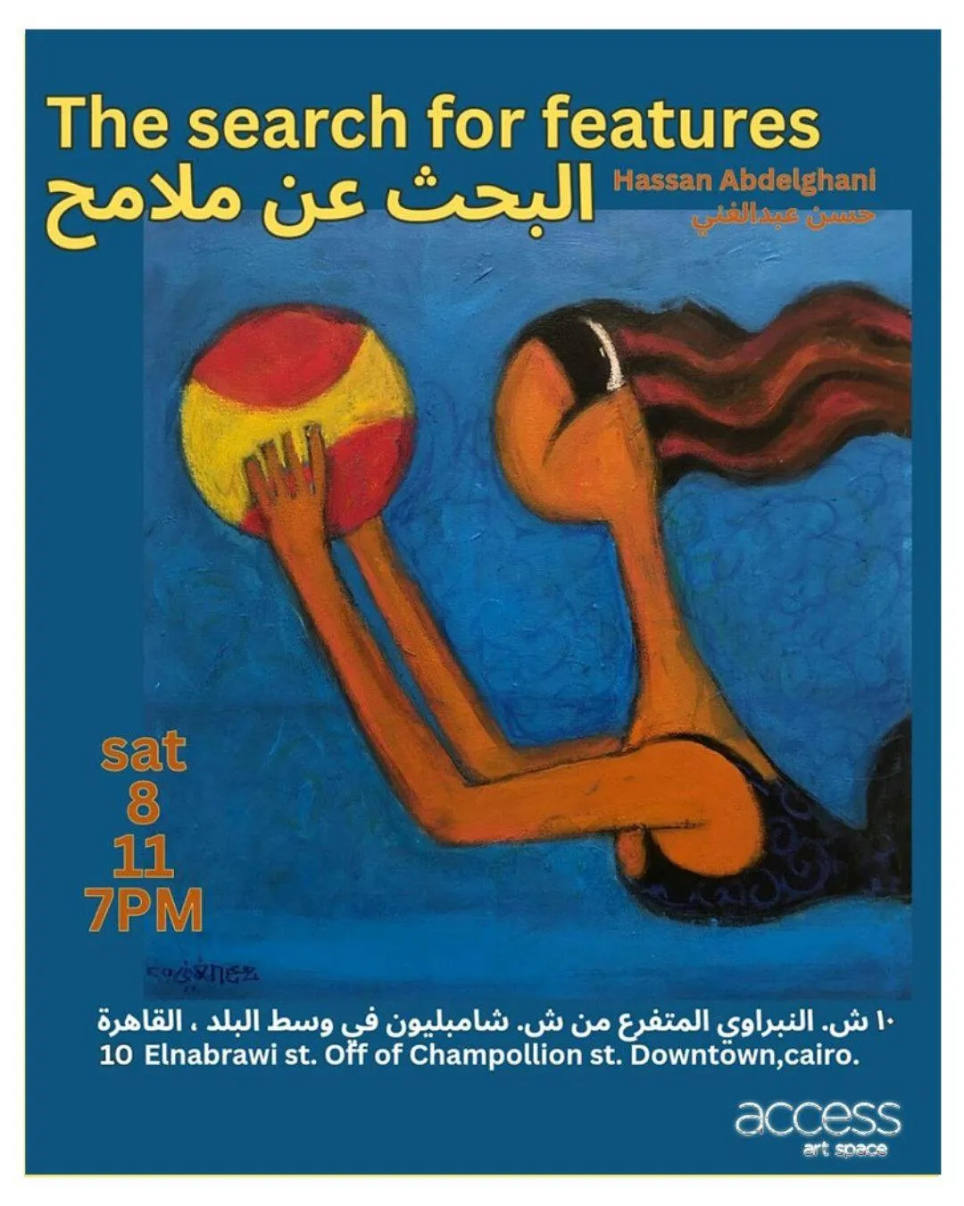 مساحة أكسيس الفنية يسعدها دعوتكم لحضور افتتاح المعرض الفني الجديد للفنان حسن عبد الغني بعنوان "البحث عن ملامح" — رحلة فنية تمزج بين التلقائية والتراث، وتكشف ملامح الروح من خلال الألوان والحركة والتفاصيل اليومية. استمتعوا بتجربة بصرية غنية تجمع بين الماضي والحاضر بأسلوب فني فريد ومعبّر. السبت 8 نوفمبر الساعة 7:00 مساءً ١٠ ش. النبراوي المتفرع من ش. شامبليون في ، وسط البلد القاهرة