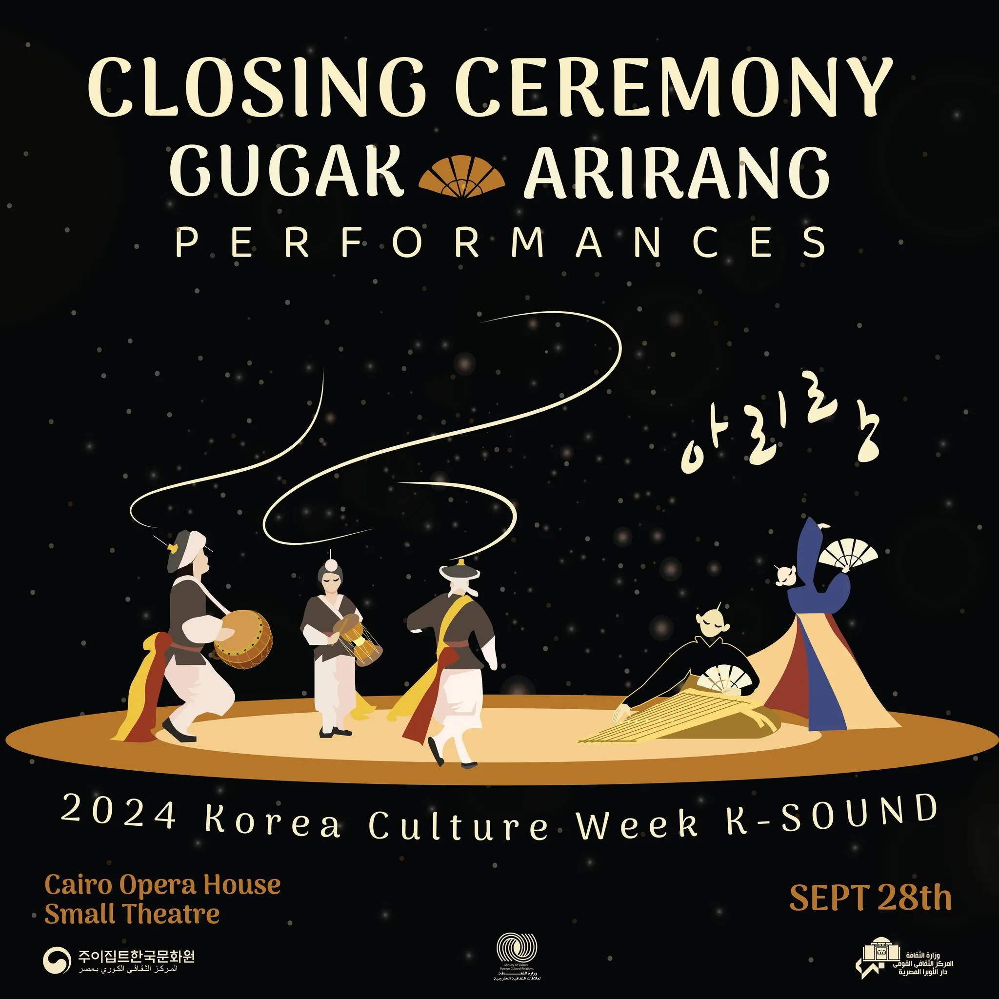 افتتاح أسبوع الثقافة الكورية "K-SOUND" لعام 2024! المكان: دار الأوبرا بالقاهرة والمركز الثقافي الكوري بمصر التاريخ: 22 سبتمبر - 28 سبتمبر اليوم، تبدأ أخيرًا فاعلياتK-SOUND للاحتفال بالذكرى العاشرة لافتتاح المركز الثقافي الكوري في مصر! سيبدأ العرض الافتتاحي اليوم بأداء مذهل لـ **فرقة موسيقى البوب جوسون "إينالتشي"**، لذا لا تفوتوها! الأحداث الرئيسية: الأداء الافتتاحي لإينالتشي معرض Play K-Sound ورشة عمل الأريرانج وصناعة المراوح لموسيقى التقليدية الكورية والأداء الختامي للأريرانغ (28 سبتمبر) جميع الأحداث مجانية، ولكن الأحداث الكبرى تتطلب التسجيل المسبق. يرجى مراجعة موقع المركز الثقافي لمعرفة جدول الفعاليات وطريقة التقديم. نطلب اهتمامكم ودعمكم! تعال واستمتع بتجربة أصوات كوريا الآن!