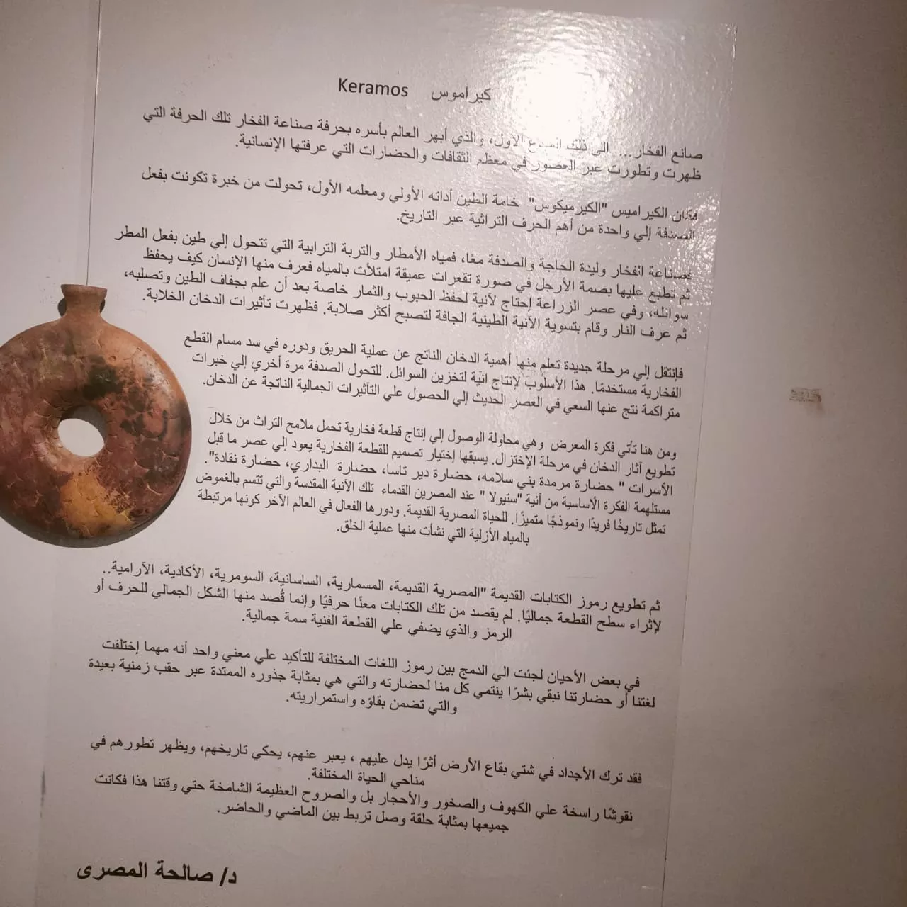 کیراموس صالحه المصريدار الأوبرا المصرية بقاعة صلاح طاهر وذلك في تمام الساعة السادسة مساء يوم الثلاثاء الموافق ٢٣ يناير ٢٠٢٤ يوميا من ١٠ ص حتي ظ، ومن ٤.٣٠م حتي ٨.٣٠م يستمر المعرض حتى ٢٩ يناير ٢٠٢٤