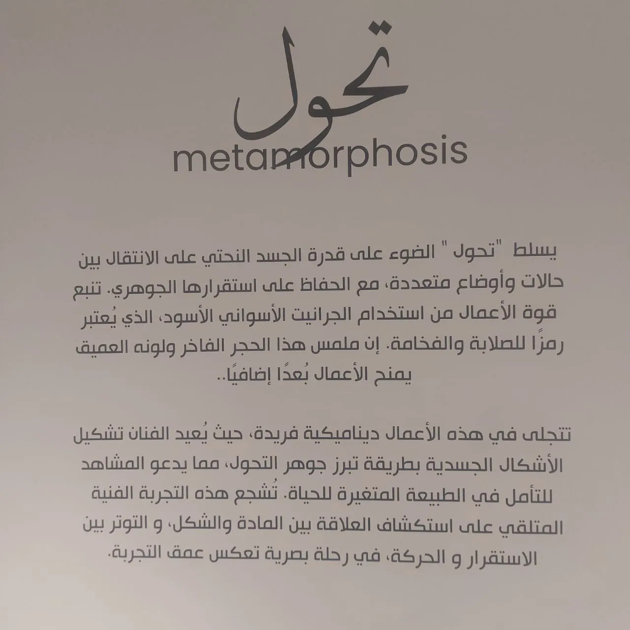 يسرنا دعوتكم لحضور افتتاح معرض النحت محمود الدويهي يوم الاحد 27 اكتوبر الساعة 7 مساء "تحول يضيء القدرة الملحوظة للجسم النحت على الانتقال عبر مختلف الولايات والمواقف مع الحفاظ على ثباته الجوهري. محمود الدويحي يستمد إلهامًا عميقًا من مسقط رأسه في أسوان. منحوتاته، المصنوعة من الجرانيت أو البرونز، تلتقط جوهر الحياة الريفية على طول نهر النيل، وتصور الفلاحين والصيادين في لحظاتهم اليومية. المعرض سيقام في قاعة 2 وسيستمر حتى 10 نوفمبر
