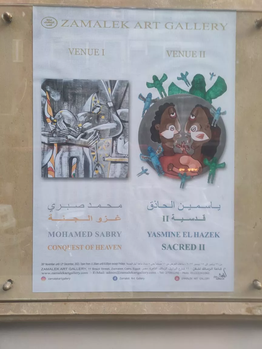 ZAMALEK ART GALLERY ياسمين الحاذق قدسية 11 محمد صبري غزو الجنة MOHAMED SABRY CONQUEST OF HEAVEN YASMINE EL HAZEK SACRED II من ٢١ نوفمبر الى ١٢ ديسمبر ٢٠٢٣ ساعات العمل من 11 صباحا حتى 08 مساءا ما عدا ايام الجمعه 11 شارع البرازيل الزمالك القاهرة مصر www.ramalekangallery.com E-Mail: admin@ramalekartalliny.com