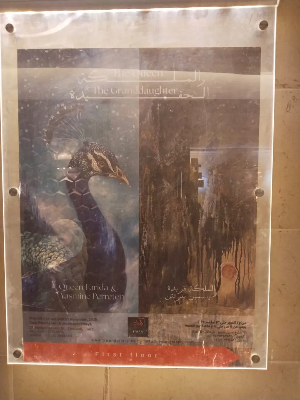 يتشرف ليوان ارت جاليري بدعوة سيادتكم لافتتاح معرض "الملكة و الحفيدة" الذي یجمع لأول مرة بین أعمال الملكة فریدة، ملكة مصر السابقة والأمیرة یاسمین بیریتن في تجربة فنیة ممیّزة تمتد عبر الأجيال، ليمنح الزوار فرصة لاكتشاف سلسلة فنیة ممتدة عبر الزمن. الافتتاح يوم السبت ٢٥ أكتوبر ٢٠٢٥، الساعة ٦ مساءً المعرض مستمر حتى ١٣ نوفمبر ٢٠٢٥ يومياً من ١١ صباحاً حتي ٨ مساءً ماعدا يوم الجمعة.