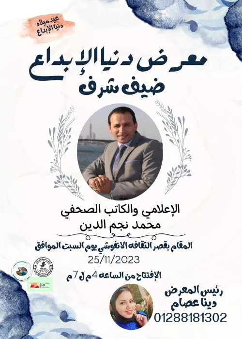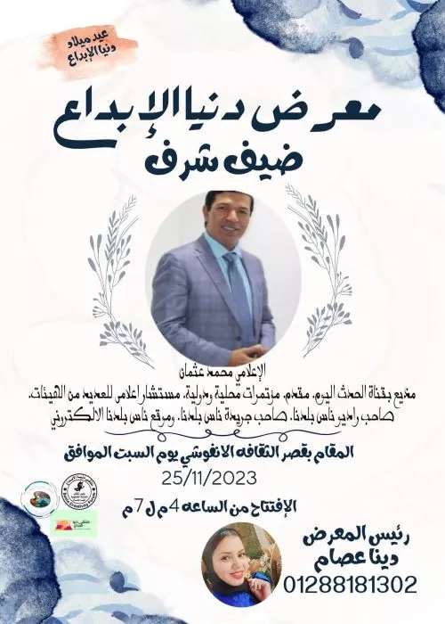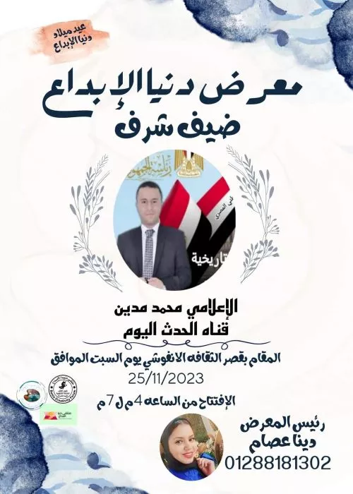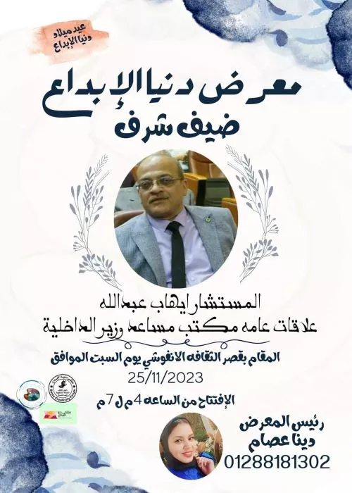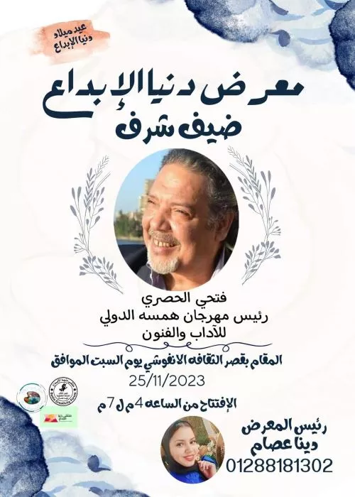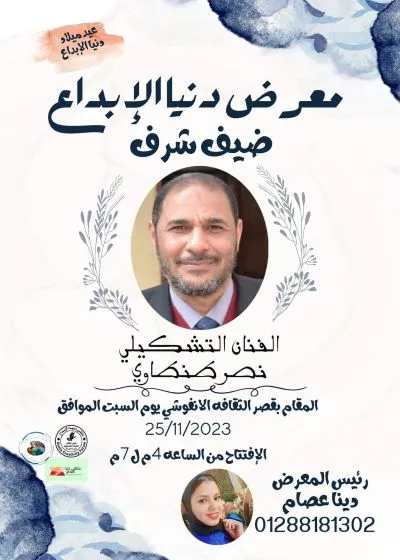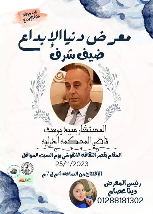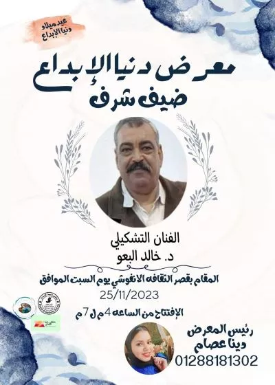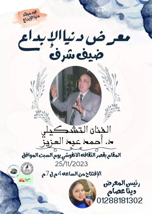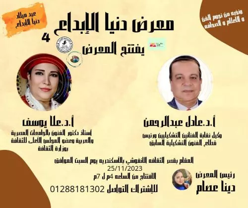 يفتتح المعرض.. أ.د. عادل عبدالرحمن وكيل نقابة الفنانين التشكيليين ورئيس قطاع الفنون التشكيلية السابق أ.د. علا يوسف أستاذ دكتور الفنون بالجامعات المصرية والعربية وعضو المجلس الأعلى للثقافة بوزارة الثقافة