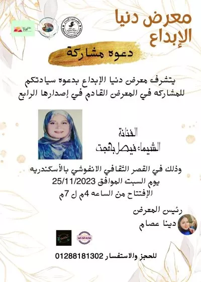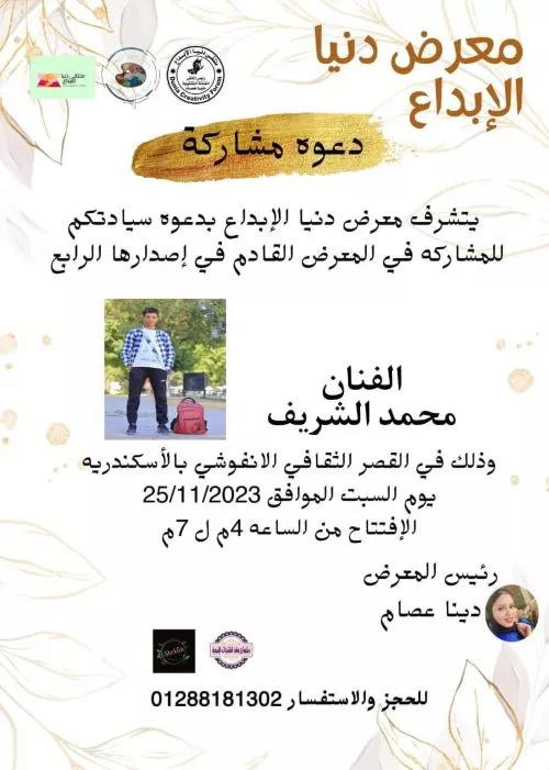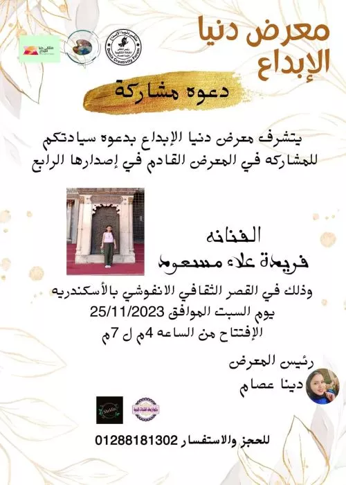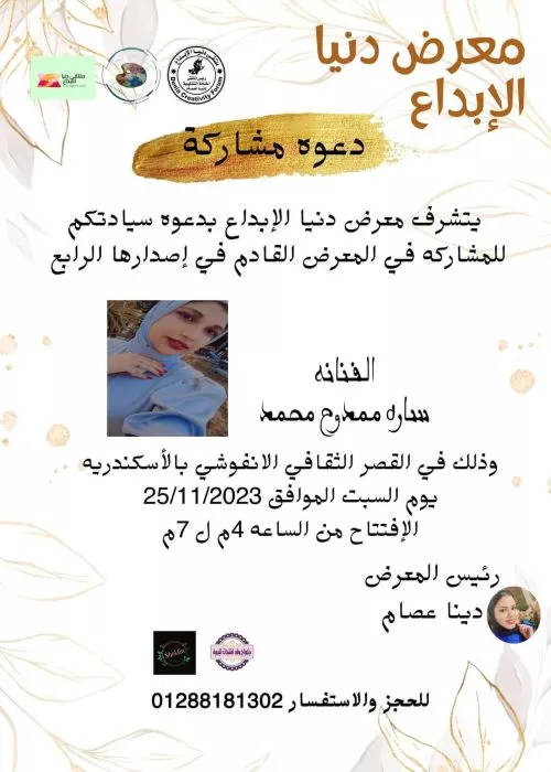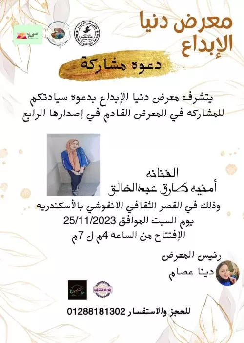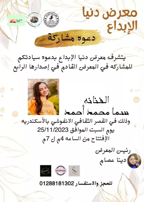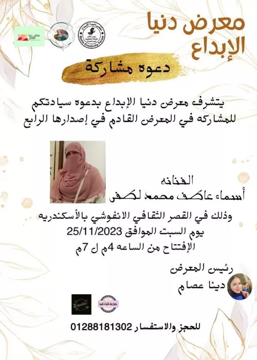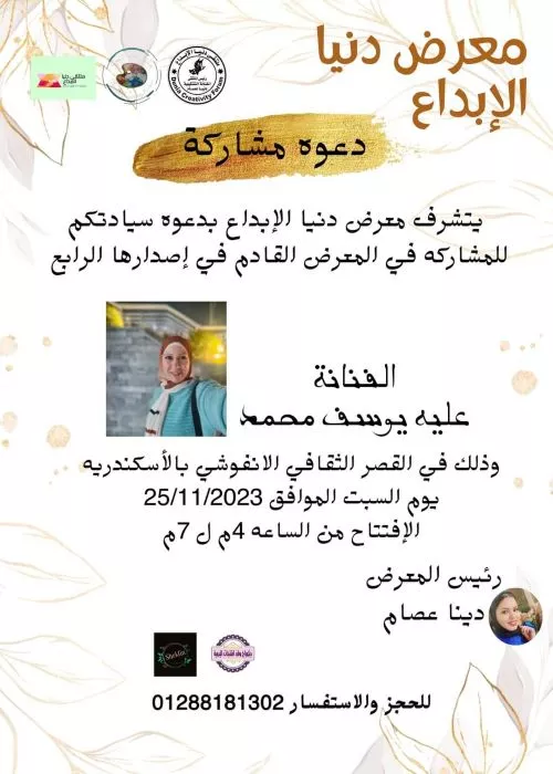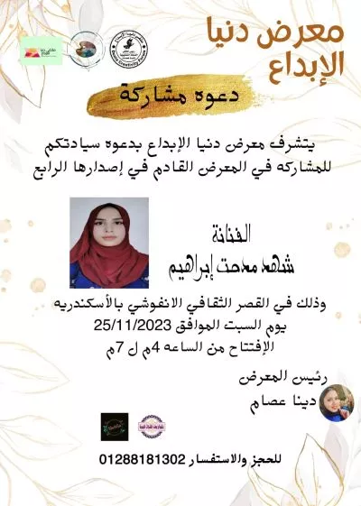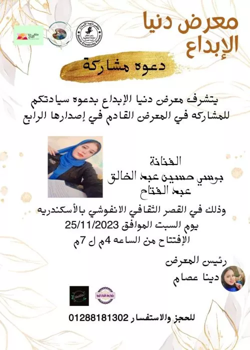 متاح لجميع الأعمال الفنيه متاح لجميع المقاسات الفنيه المشاركه بعمل واحد أو اثنين ليك حريه التعبير رسوم الاشتراك 150ج بيتم تحويل رسوم الاشتراك علي رقم فودافون كاش 01010576698 وبتبعتلي اخر ٣ارقام من الرقم اللي هتحول منه و اسكرين من الرساله وبتبعتلي اسمك ثلاثي وصوره ليك لتجهيز الدعوه بأسبقية الحجز قبل اكتمال العدد للتواصل واتساب 01288181302