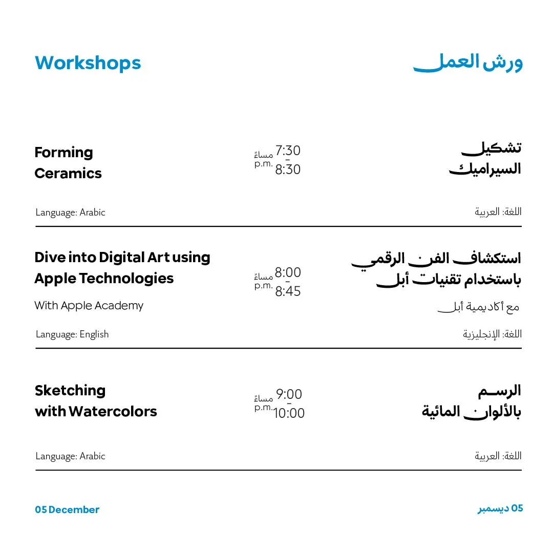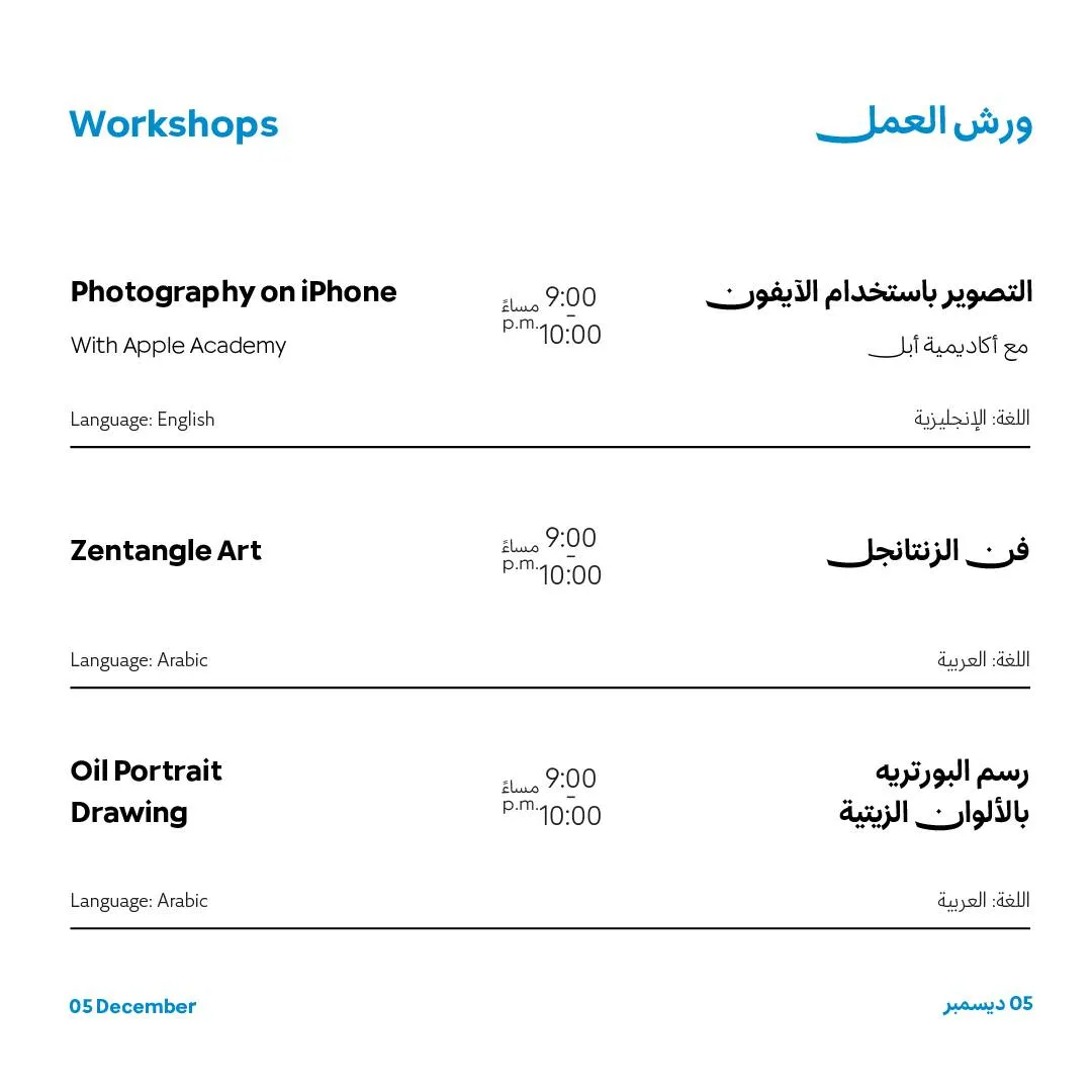 https://bit.ly/499m8A6 #أسبوع_مسك_للفنون شاركونا الاحتفاء بالفن والفنانين في و أسبوع مسك للفنون المعارض الفنية - البرامج التعليمية | العروض الحية معرض الكتب الفنية منطقة الجاليريات الفنية - التجارب التفاعلية . سوق الفن والتصميم احجز تذكرتك الآن ! 10-5 ديسمبر 2024 نرحب بدخول الصغار في أسبوع مسك للفنون فقط في 5 ،و6و7 ديسمبر وفي الأيام المتبقية، سيقتصر الدخول علي البالغين الذين تزيد أعمارهم عن 16 عاماً فقط.