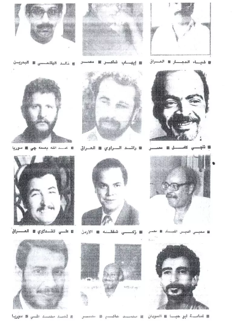 السودان : اسامة أبو صبا سوريا : احمد محمد على عبد الله بصمه چی عبد الهادى الشماع باسين الخليل حسن ادلبی العراق : خضير الحميري رائد نورى الراوي شيرين الراوي ضياء الحجار عبد الرحيم ياسر عبد الكريم سعدون على المندلاوي مؤيد نعمة وليد نايف محمد الكويت : علي الشمري المغرب : العربي الصبان الجزائر : حنكور قاسی مصر : إبراهيم حنيطر إبراهيم مرزوق عيد احمد ثابت طوغان احمد حجازی أسامة أحمد بلال إسماعيل إبراهيم إسماعيل حسنين السيد عبد القادر (حرفوش) انسى عبد الفتاح الديب بهجت عثمان جمال حسنين جمال عبيد جمعه فرحات جوده عواد حسن المصرى حسنی عباس محمد حسن حمدی عثمان حمید محمد مجاهد رءوف عياد زهدى إبراهيم سامح مصطفی زکی حسان د. سيد الخضري شحته حسني حسين محمود عادل البطراوي عادل مصطفى كامل عبد الرحمن محمد عبد العزيز تاج عبد العزيز الصوابي ( زيزو محسن جابر عصام الدين الشرقاوى کرم بدره عمرو محمد جمال سليم محمد حاكم محمد عاطف سالم محمد عفت إسماعيل محمد عمر محمد كمال الصاوى محمد وجدى ونس محيى الدين اللباد نبيل السمالوطى ياسر سعيد السيد جعيصه ايهاب شكر توفيق الحو محمد حسن حمودة شريف عليش عصام الشوربجي ناجي كامل سمير عبدالخالق ميسور عليش محمود نبيه