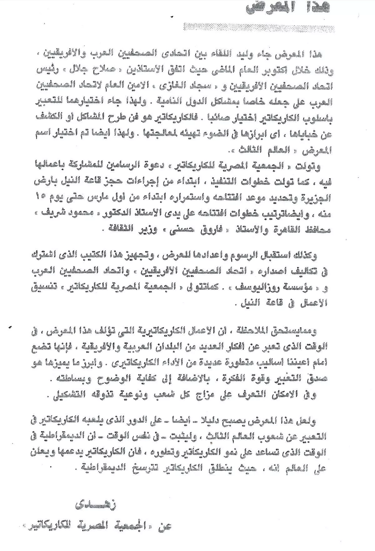 معرض كاريكاتير العالم الثالث من اول مارس الى ١٥ مارس 1990 قاعة النيل بالجزيرة