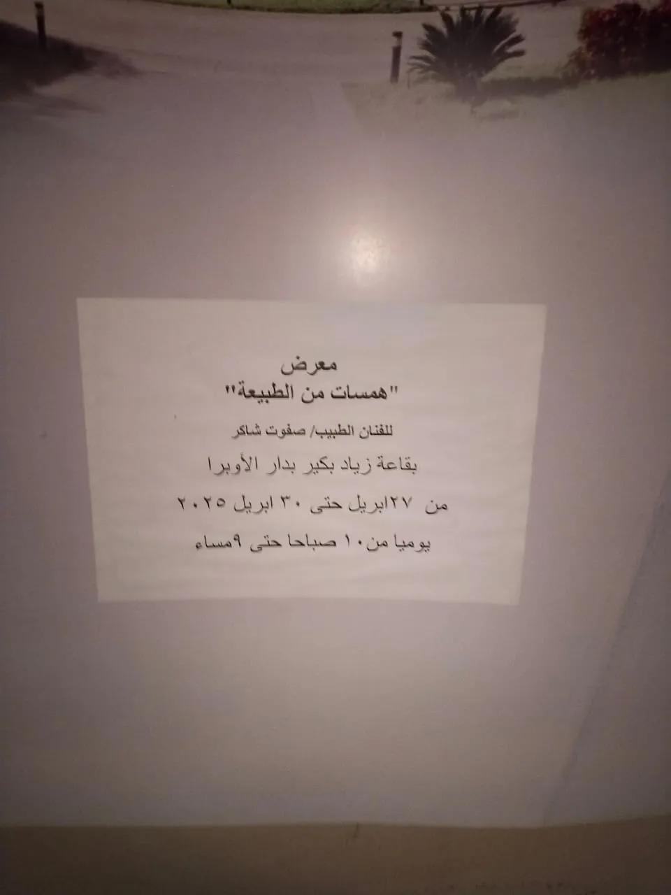 معرض همسات من الطبيعه للفنان الدكتور صفوت شاكر بقاعه زياد بكير المكتبه الموسيقيه دار الاوبرا وذلك ابتداء من يوم 27 4 2025 حتى 30 4 2025 الساعة 10 صباحا و حتي الساعة 8 مساءا