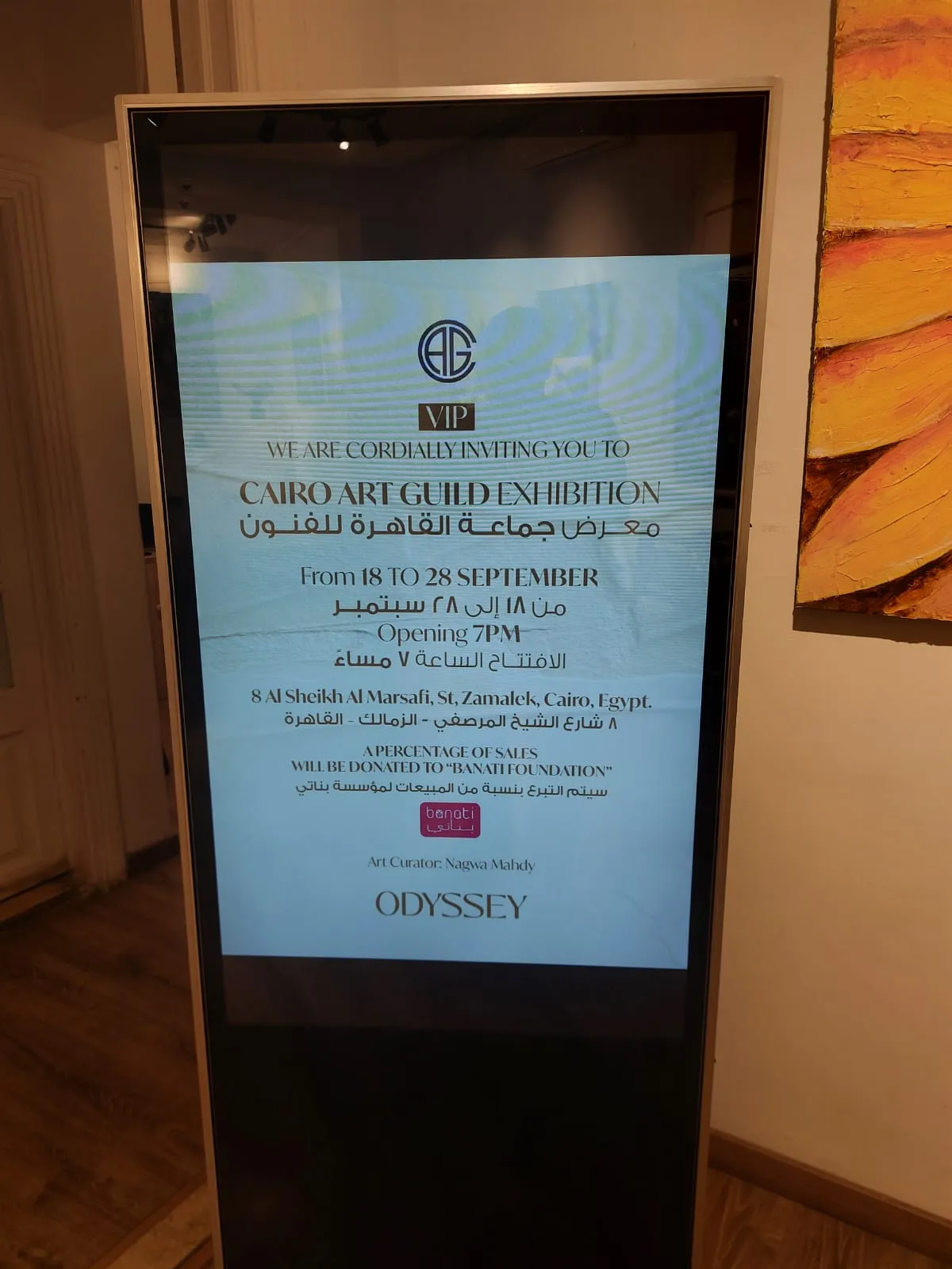 اكتشف سحر الفن مع أوديسي من خلال مشاركتنا في معرض جماعة القاهرة للفنون في الدورة 52 من 18 إلى 28 سبتمبر انضموا إلينا في الافتتاح الساعة 7 مساءً، واستمتعوا بزيارة المعرض يومياً من 10 صباحاً إلى 9 مساءً سيتم التبرع بنسبة من مبيعاتنا لصالح مؤسسة بناتي التي تدعم الأطفال بدون مأوى من الفتيات والمحرومين من الرعاية الأسرية سنكون في انتظاركم! شارع الشيخ المرصفي، الزمالك، القاهرة، مصر