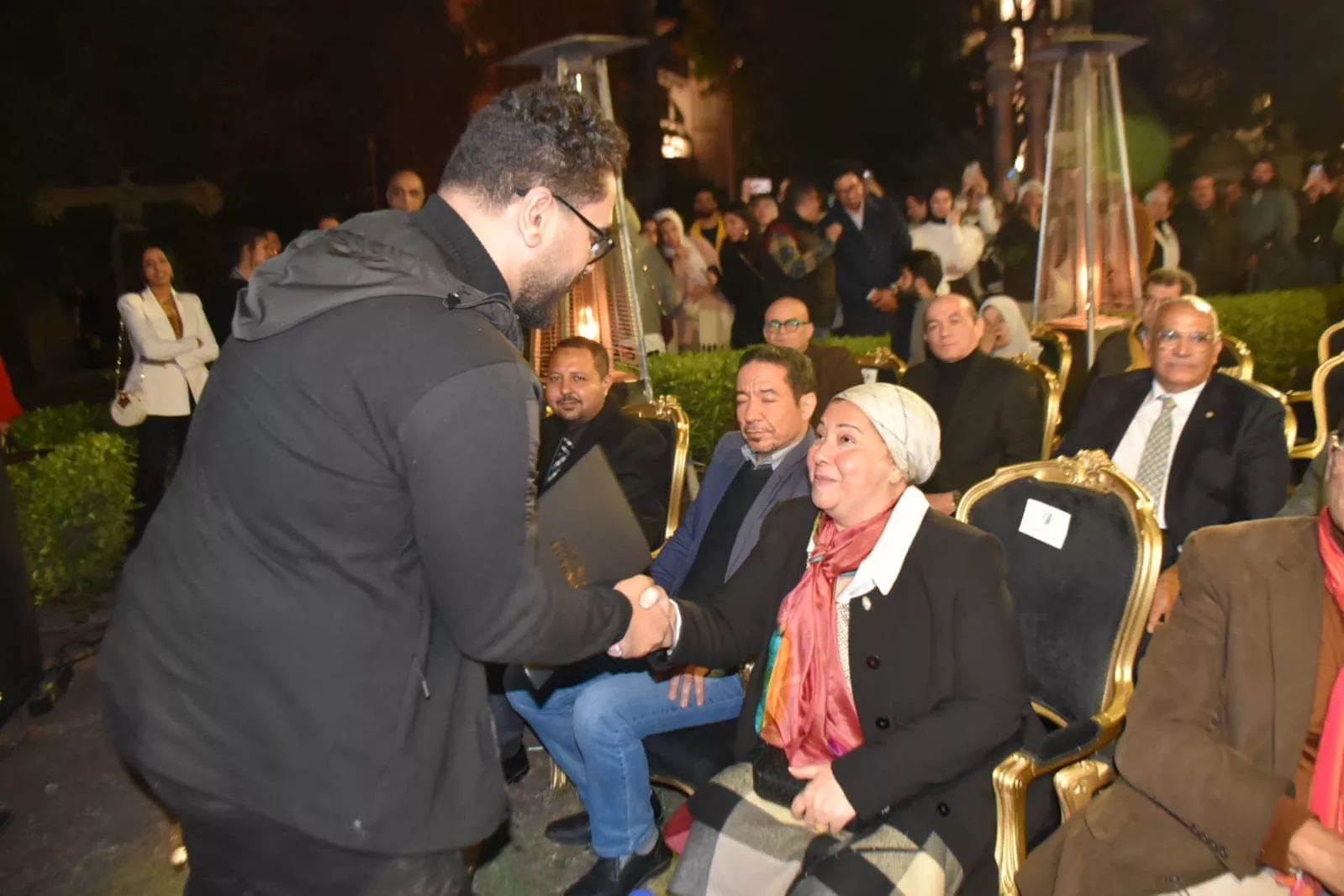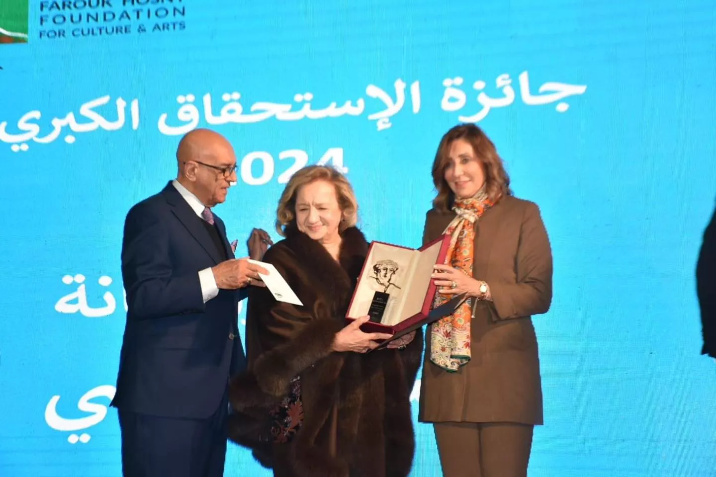 افتتاح معرض جوائز الفنون للشباب وحفل توزيع جوائز فاروق حسني للفنون الدورة الخامسة ************* تحت رعاية وزارة الثقافة افتتحت الدكتورة نيفين الكيلاني وزيرة الثقافة والمهندس نجيب ساويرس نائب رئيس مجلس أمناء مؤسسة فاروق حسني للثقافة والفنون وأعضاء مجلس الأمناء المعرض الجماعي للشباب وحفل توزيع جوائز الفنون الدورة الخامسة لعام 2024 ، بمركز الجزيرة للفنون، بحضور عدد كبير من الفنانين والنقاد والشخصيات البارزة وقيادات وزارة الثقافة والشخصيات الدبلوماسية أبرزهم الدكتور سامح فريد وزير الصحة الاسبق، الدكتور خالد عناني وزير السياحة والآثار السابق ، والدكتور مصطفى الفقى عضو مجلس الامناء ، والدكتورة مؤمنة كامل عضو مجلس الامناء، والكاتب محمد سلماوي والدكتور احمد غنيم رئيس متحف الحضارة . وصاحب إفتتاح المعرض حفل موسيقى كلاسيكي ، وبدأ الحفل الذي قدمته الإعلامية جاسمين زكي عضو مجلس الامناء برسالة مسجلة للفنان فاروق حسني معبراً عن إعتذاره لعدم الحضور لوجودة بفترة النقاهة بعد تعرضة لوعكة صحية مؤخرا ثم وجه التحية للدكتورة نيفين الكيلاني وزيرة الثقافة والحضور وهناء الشباب متمنياً لهم مستقبل باهر ومزيد من الإبداع والتميز، وألقى المهندس نجيب ساويرس نائب رئيس مجلس الأمناء كلمة ثمن فيها دور وزارة الثقافة فى رعاية أنشطة المؤسسة كما توجه بالشكر للوزيرة نيفين الكيلاني وزيرة الثقافة ولكل وسائل الأعلام المقروءة والمرئية في دعمها الدائم للمؤسسة والاهتمام بكافة الأنشطة التي تقدمها للشباب المبدع والمتميز واكتشافهم وتقديمهم للمجتمع وتوجه بالتهنئة لجميع الفائزين والمشتركين في المعرض الجماعي لجوائز الفنون الدورة الخامسة لعام 2024 متمنيا لهم دوام التوفيق والنجاح وبدء حفل توزيع جوائز الفنون بجائزة الاستحقاق الكبري وعرض فيلم تسجيلي عن الكاتبة الكبيرة سناء البيسي حيث سلمت وزيرة الثقافة نيفين الكيلاني والكاتب محمد سلماوي الجائزة للكاتبة الكبيرة سناء البيسي ،ثم توجهت الكاتبة الكبيرة سناء البيسي بكلمة شكر للمؤسسة وللفنان فاروق حسني معربة عن سعادتها بهذا التكريم وسط الحضور الحاشد من شباب الفنانين حيث اعربت عن شكرها لمعالى الوزيرة نيڤين الكيلاني والقائمين على الحفل والسادة اعضاء مجلس الامناء والسادة الكتاب والصحفيين. ثم أعقب ذلك توزيع جوائز الفنون للشباب بعرض فيلم تسجيلي بعنوان ( قصة جائزة ) ثم جاءت جوائز الفنون كالأتي : - جائزة النقد الفني فازت بالمركز الأول ساره أحمد حسن عوده وحصولها على درع التكريم وشهادة تقدير ، والمركز الثاني شيماء سمير عبد المنعم عباس ، والمركز الثالث شيماء محمود أحمد عبد الرحيم . - جائزة العمارة فازت بالمركز الأول مشاركة فردية لجينة أحمد محمد علي وحصولها على درع التكريم وشهادة تقدير ، والمركز الثاني مشاركة جماعية لكلاً من محمد ناصر محمود حسن ، نداء هانئ محبوب أحمد ، عبد الرحمن عمادالدين رشاد إسماعيل ، والمركز الثالث مشاركة فردية محمد بدوي شحاتة بدوي ، كما فاز بشهادة شكر وتقدير بمشاركة جماعية لكلاً من يوسف محمد محمود عثمان ، محمد أحمد زكي سيد ، حسام جمال اليماني حامد - جائزة التصوير الفوتوغرافي فازت بالمركز الأول ودرع التكريم حنان محمد مأمون السعيد ، وفاز بالمركز الثاني ابراهيم محمد ابراهيم مصطفي كامل ، وفازت بالمركز الثالث تسنيم أحمد محمد على . - جائزة النحت فاز بالمركز الأول ودرع التكريم حسام مصطفى رمضان محمد ، وفاز بالمركز الثاني إبراهيم عوض محمد إبراهيم ، وفاز بالمركز الثالث مناصفة كلاً من مروه مجدي عيد عبد الغني ، محمد سعيد محمد محمد المنسي . - جائزة التصوير “الرسم" فاز بالمركز الأول ودرع التكريم أحمد صلاح عارف الجندي ، وفاز بالمركز الثاني خالد العجيزي فتح الله أحمد ، وفاز بالمركز الثالث شادي محمد حامد إبراهيم . ومن الجدير بالذكر أن المعرض يستمر حتى 7 مارس 2024 بمركز الجزيرة للفنون بالزمالك .