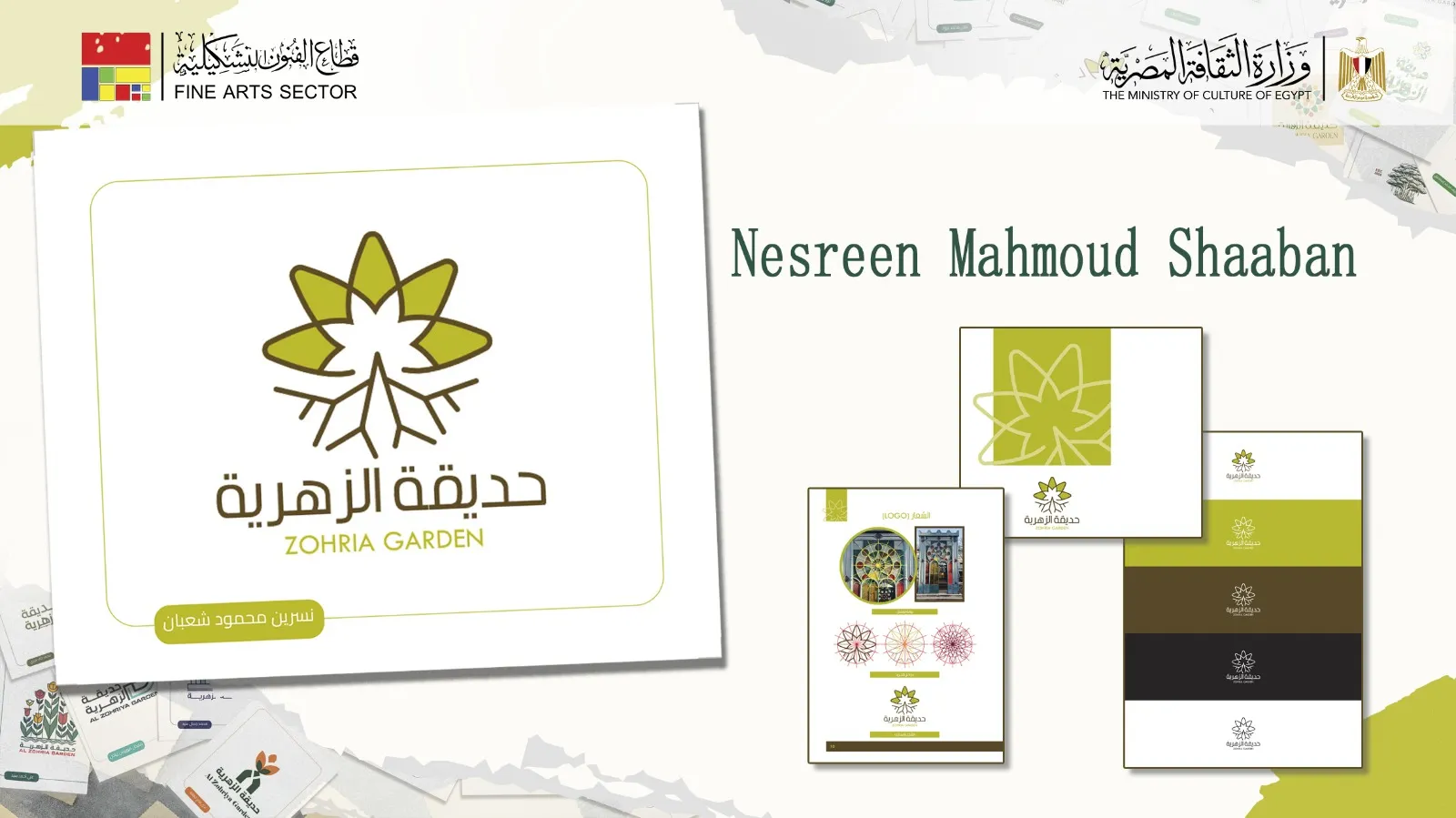 قطاع الفنون التشكيلية يهنئ الفائزين في مسابقة حديقة الزهرية ويعرض التصاميم الثلاثة الفائزة اختتمت أمس الاثنين بمركز الجزيرة للفنون فعاليات مسابقة تصميم الهوية البصرية لحديقة الزهرية بالزمالك، وذلك بحفل توزيع الجوائز الذي حضره الدكتور أحمد فؤاد هنو وزير الثقافة، والمهندس عبدالله خليل الرئيس التنفيذي لشركة عين يونايتد العقارية، والدكتور وليد قانوش رئيس قطاع الفنون التشكيلية ولفيف من الفنانين والضيوف. وبهذه المناسبة يهنئ القطاع الفائزين بجوائز المسابقة ويثمن دور كل شارك في المسابقة وفي تنظيمها والاشراف عليها. من جانبه، أشار الدكتور وليد قانوش، إلى أن المسابقة فتحت المجال أمام المبدعين والمصممين لإطلاق طاقاتهم الإبداعية في صياغة رؤية معاصرة لرمز بصري يوثق تاريخ الحديقة ويمثل هويتها في الحاضر والمستقبل، لافتًا إلى أن لجنة التحكيم اعتمدت معايير فنية وجمالية دقيقة لاختيار التصميمات الفائزة، مؤكدًا أن التعاون مع القطاع الخاص في رعاية مثل هذه الفعاليات يُعزز الشراكة المجتمعية في حماية التراث وتنميته. وكان قد تقدم للمسابقة 92 متسابقًا، وصل منهم للمرحلة النهائية 18 متسابقًا، وحصدت الفنانات: إسراء وجيه أحمد (الجائزة الأولى) - نسرين محمود شعبان (الجائزة الثانية) - وياسمين إبراهيم عبد الخالق (جائزة المركز الثالث).