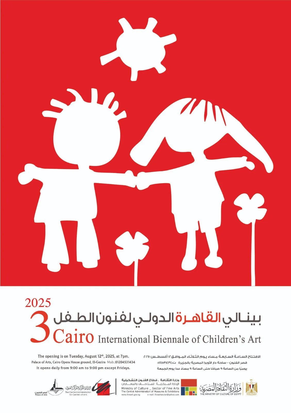 وزير الثقافة يفتتح الدورة الثالثة لبينالي القاهرة الدولي لفنون الطفل.. الثلاثاء يفتتح الدكتور أحمد فؤاد هنو وزير الثقافة الدورة الثالثة لبينالي القاهرة الدولي لفنون الطفل يوم الثلاثاء 12 أغسطس الجاري في تمام السابعة مساءً بقصر الفنون، البينالي ينظمه قطاع الفنون التشكيلية برئاسة الدكتور وليد قانوش وبالتعاون مع كلية التربية الفنية وجمعية أمسيا (التربية عن طريق الفن - أفريقيا والشرق الأوسط). تأتي الدورة تحت عنوان "تغيرات المناخ" ويضم العرض نحو 300 عمل فني لأطفال من 17 دولة هي (مصر، فلسطين، لبنان، قطر، سوريا، رومانيا، بولندا، عمان، بنجلاديش، باكستان، اليمن، الهند، الفلبين، العراق، السودان، الأردن، أوكرانيا). وتشكلت اللجنة العليا للبينالي من: الدكتورة سرية صدقي رئيساً، وعضوية الدكتور أحمد حاتم سعيد القوميسير العام، الدكتورة سلوى حمدي رئيس الإدارة المركزية للمتاحف والمعارض، الدكتورة مها مزيد، الدكتورة رانده فخري. من جانبه قال د أحمد حاتم القوميسير العام.. "الدورة الثالثة لبينالي القاهرة الدولي لفنون الاطفال تقدم رؤية أطفال العالم لتغيرات المناخ في محيطة ورؤيته لهذا الموضوع والتعبير عن الصورة التي يود أن يقدمها للعالم عن أحلامه وما يتمنى أن يرى العالم عليه في المستقبل. ليكون تعبير أطفال العالم في هذه الدورة من البينالي هي الرؤية المستقبلية لأطفال العالم اليوم ولقادة العالم في المستقبل القريب.