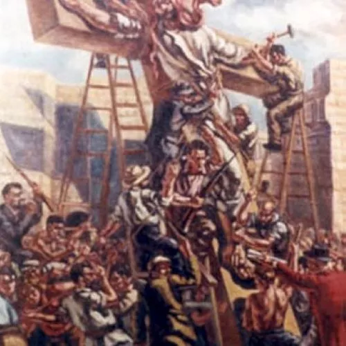ـ خمسة لوحات بمتحف الفن المصرى الحديث 1 ـ مصر تحطم الأغلال وتنشد المثل الأعلى 2ـ الصراع 3ـ إخناتون 4ـ الحاوى 5ـ فنانو الثورة - لوحتان لصندوق التنمية الثقافية 1- المسيح يصلب مرتين بفلسطين 2- مؤلف الدراما - لوحة للرئيس جمال عبد الناصر مفتاح مصر - لوحة للرئيس السادات السلام - لوحتان لمعرض الفيروز 1- النيل 2- قطاعات من الحياة